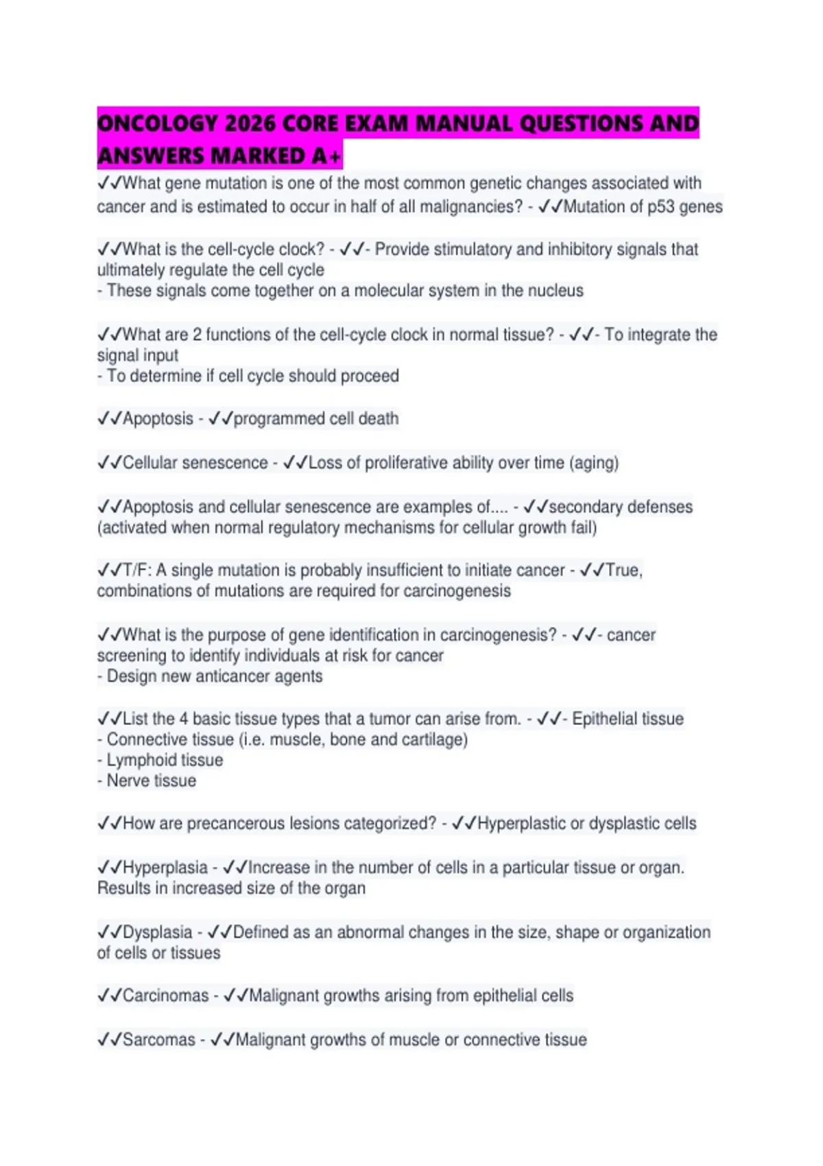 ONCOLOGY 2026 CORE EXAM MANUAL QUESTIONS AND ANSWERS MARKED