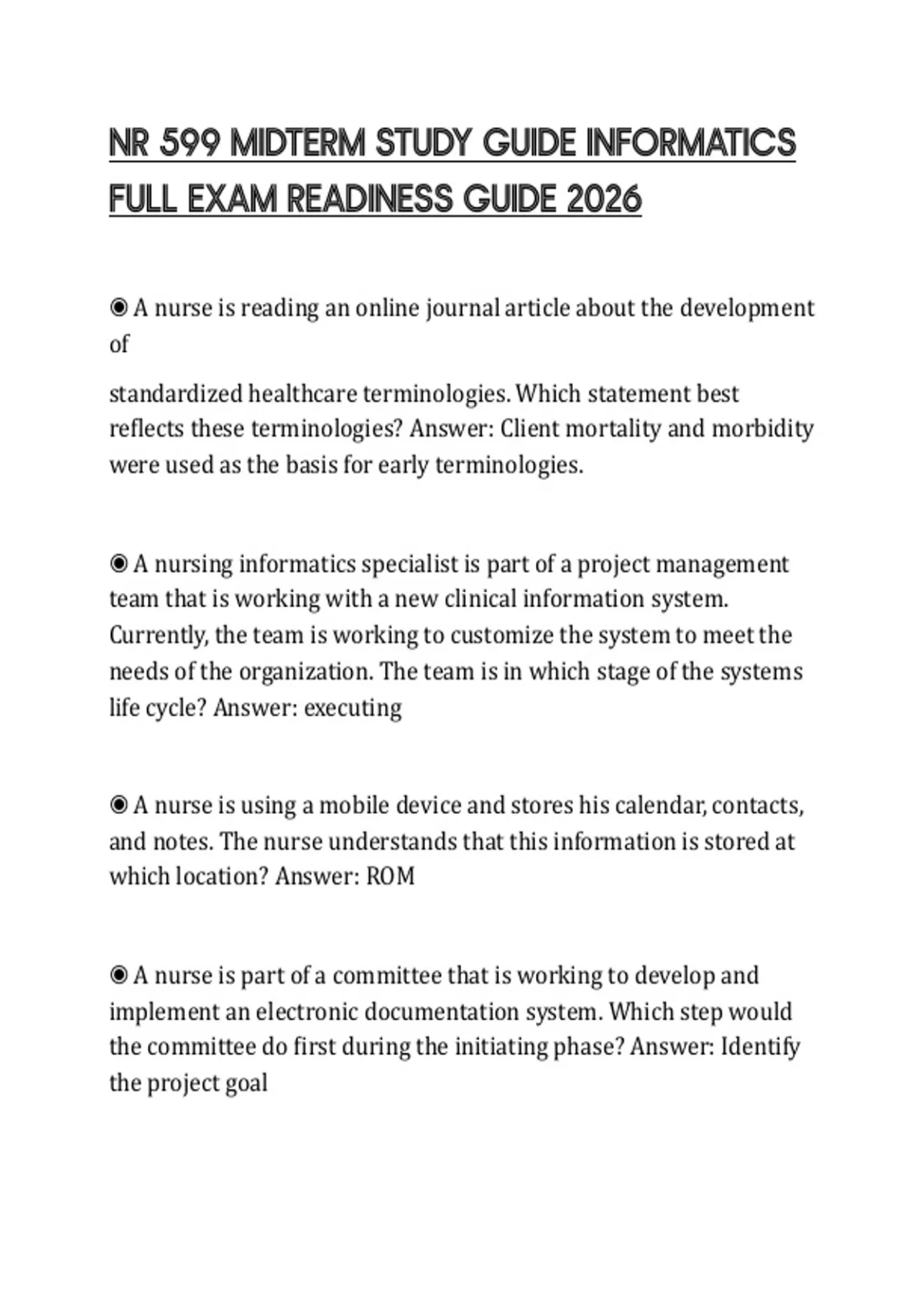 NR 599 MIDTERM STUDY GUIDE INFORMATICS FULL EXAM READINESS GUIDE 2026