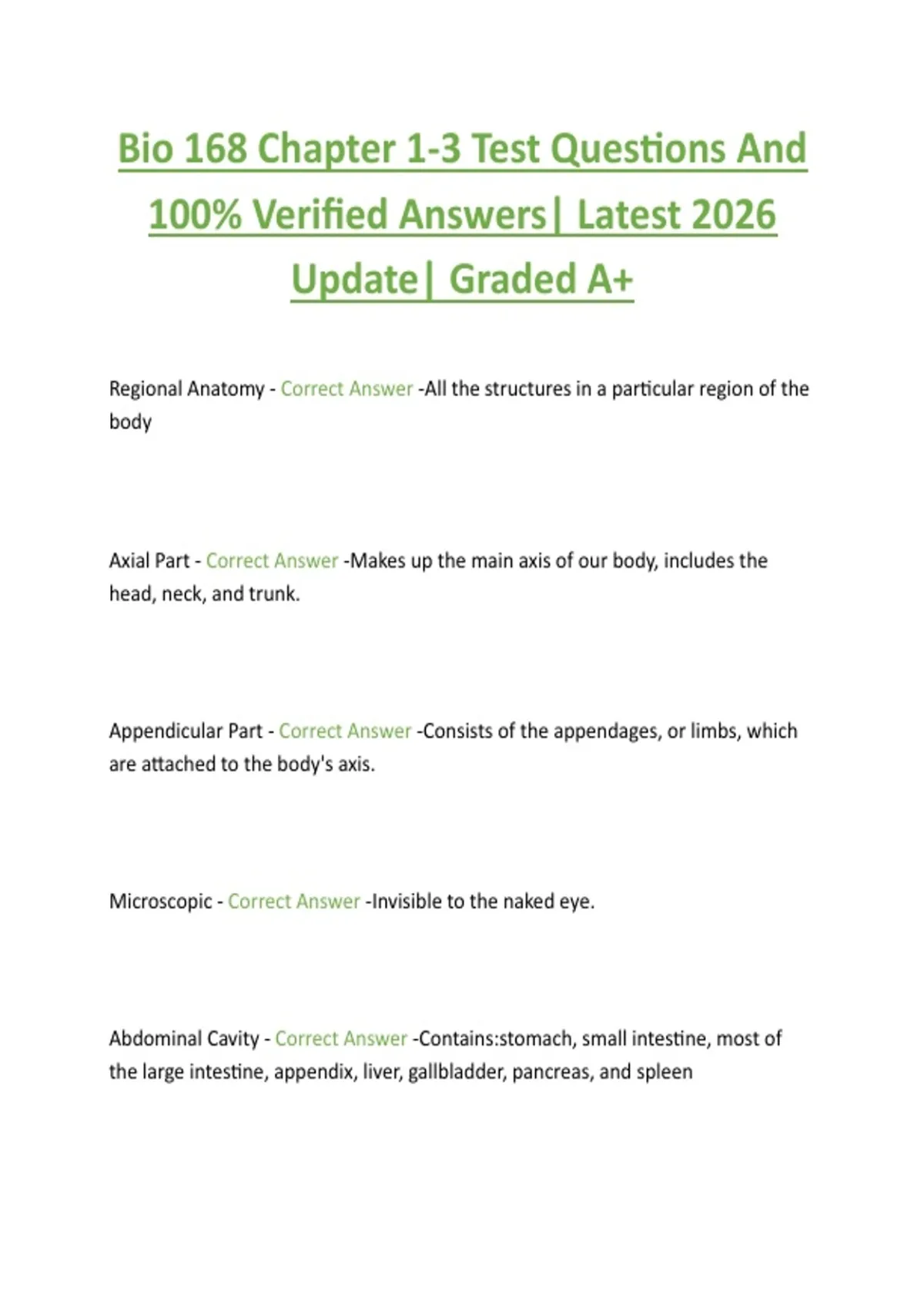 Bio 168 Chapter 1-3 Test Questions And 100% Verified Answers| Latest 2026 Update| Graded A+