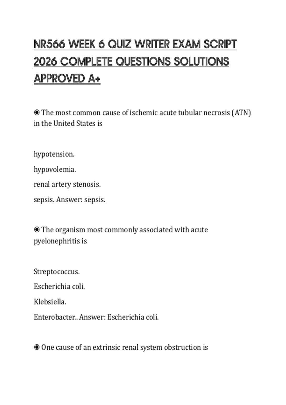 NR566 WEEK 6 QUIZ WRITER EXAM SCRIPT 2026 COMPLETE QUESTIONS SOLUTIONS APPROVED A+