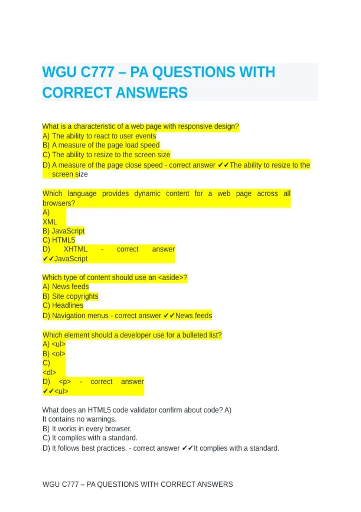 WGU C777 – PA QUESTIONS WITH CORRECT ANSWERS