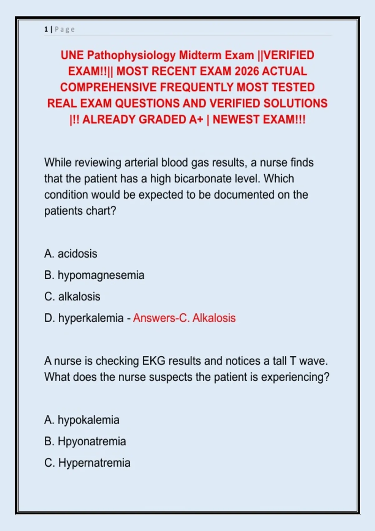 UNE Pathophysiology Midterm Exam ||VERIFIED