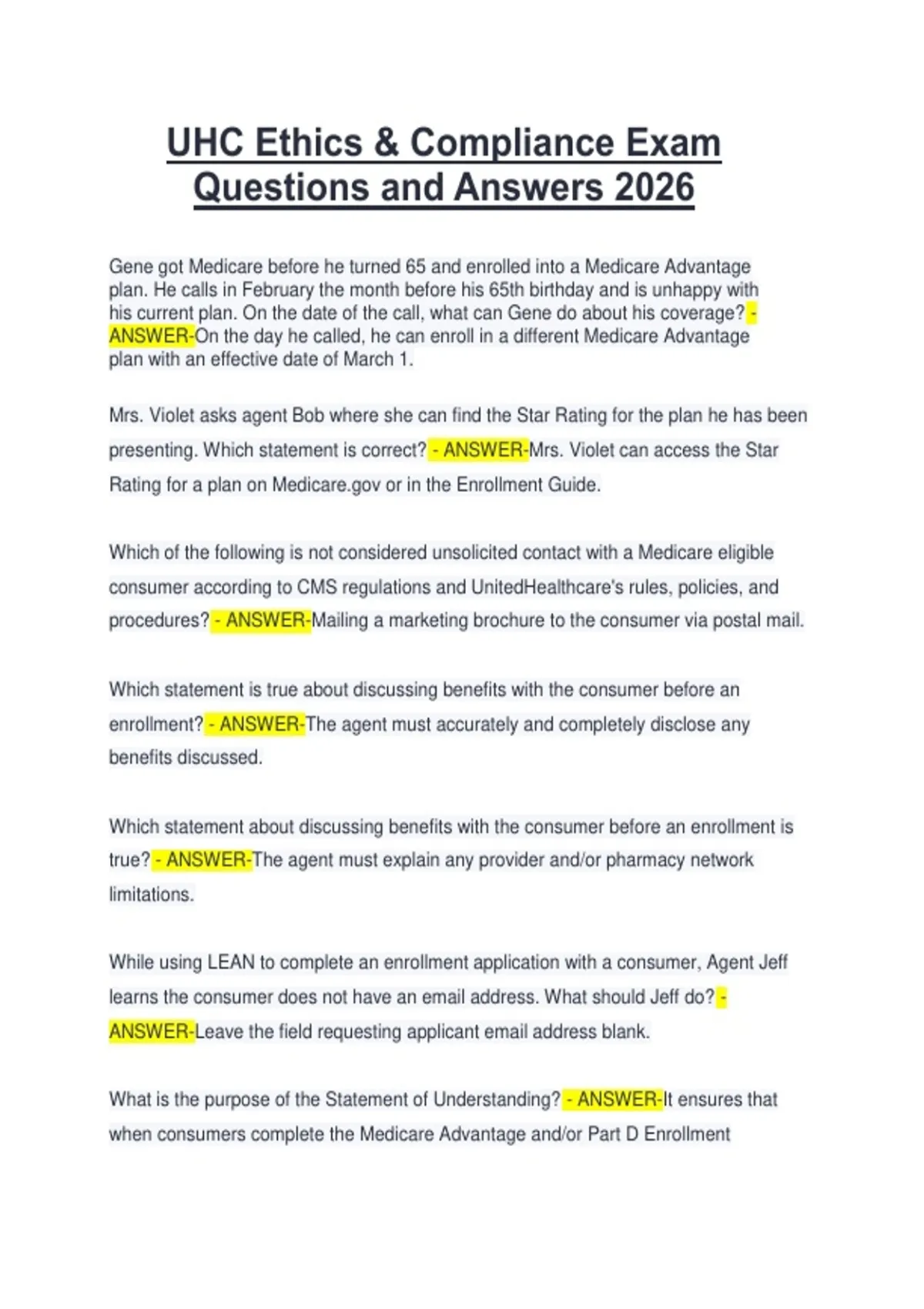 UHC Ethics & Compliance Exam Questions and Answers 2026
