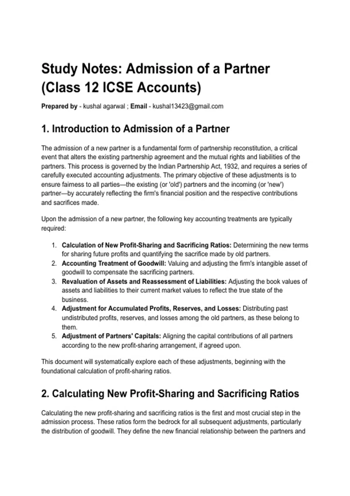 1.​ Calculation of New Profit-Sharing and Sacrificing Ratios: Determining the new terms