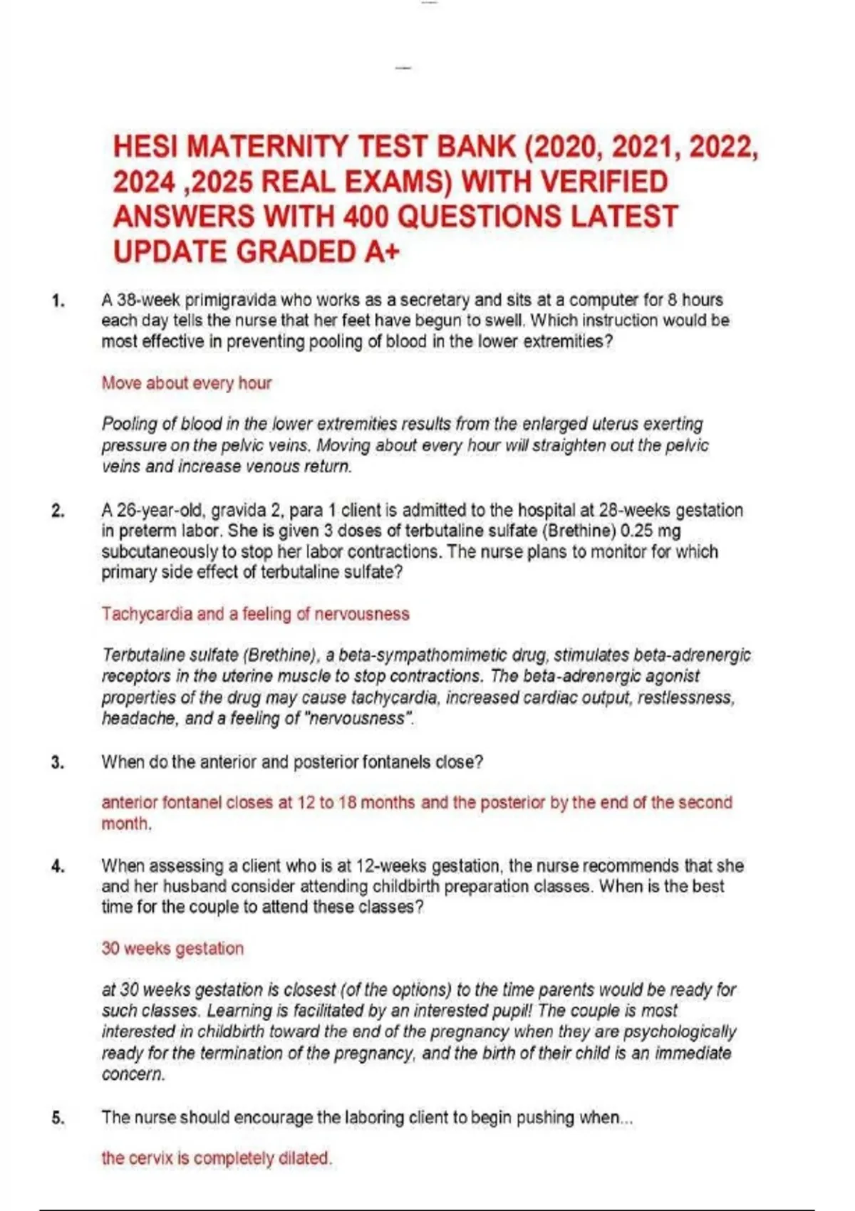 HESI MATERNITY TEST BANK (2020, 2021, 2022, 2024 ,2025 REAL EXAMS) WITH VERIFIED ANSWERS