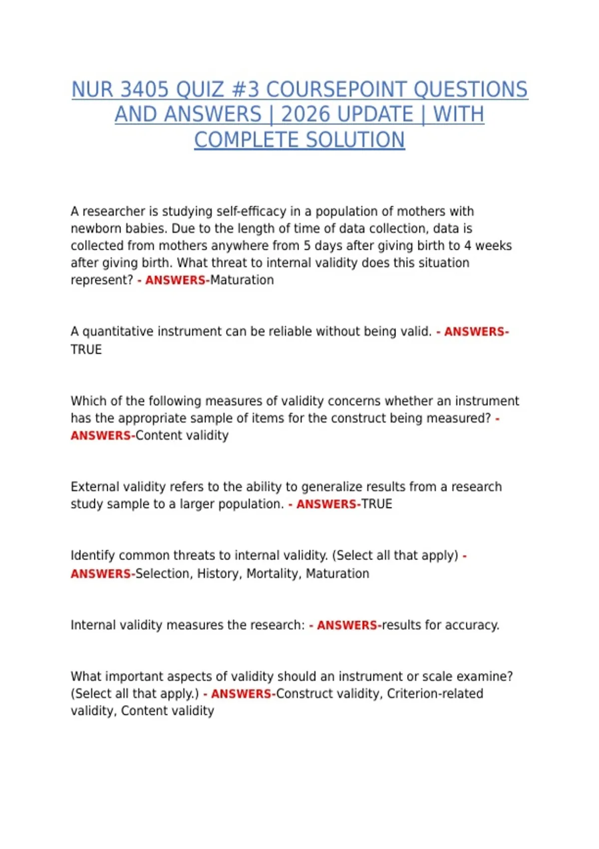 ANSWERS-Content validity
