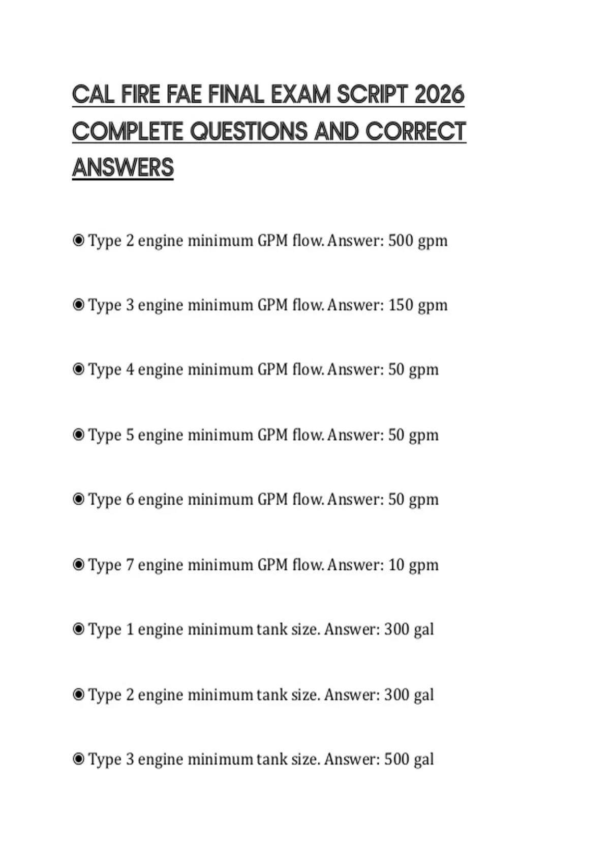 CAL FIRE FAE FINAL EXAM SCRIPT 2026 COMPLETE QUESTIONS AND CORRECT ANSWERS