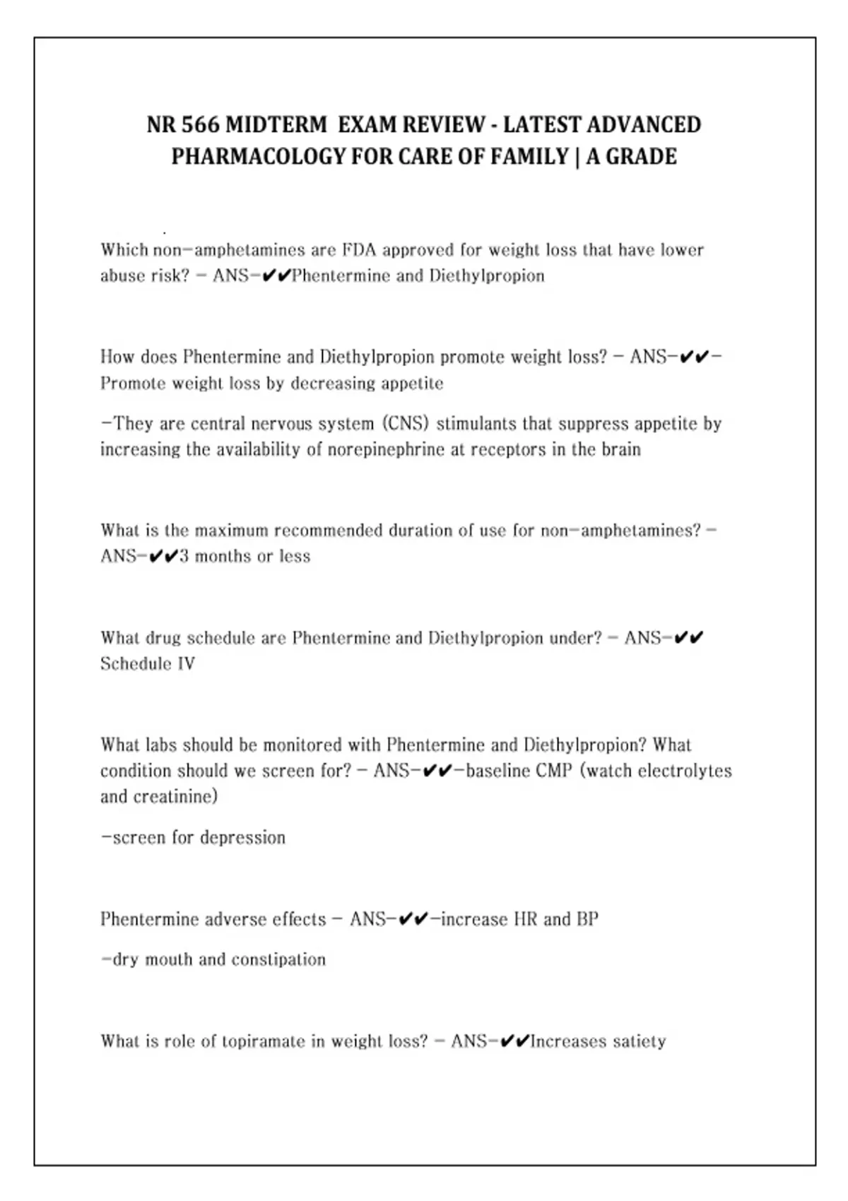 NR 566 MIDTERM EXAM REVIEW - LATEST ADVANCED PHARMACOLOGY FOR CARE OF FAMILY - A GRADE