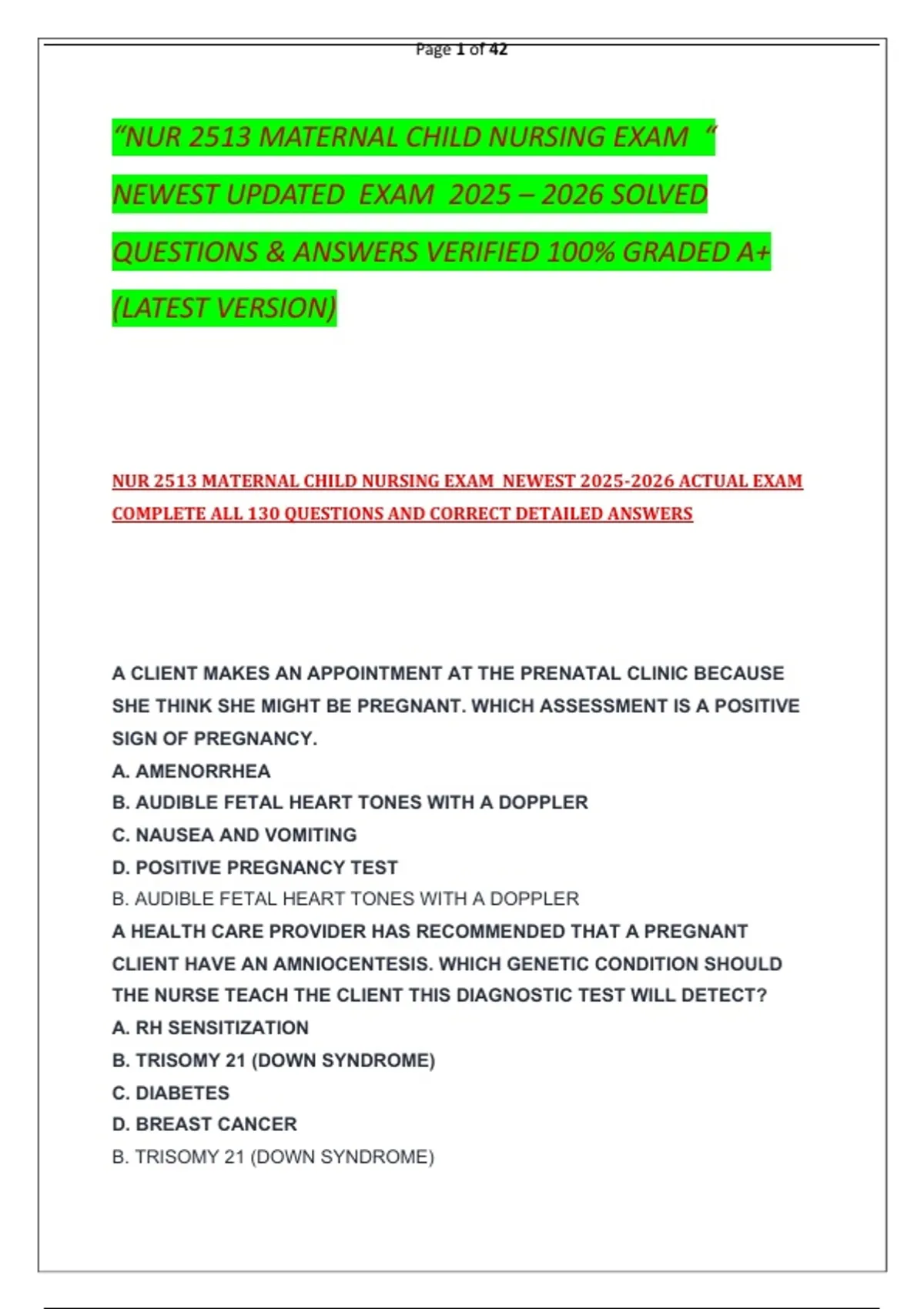 “NUR 2513 MATERNAL CHILD NURSING EXAM “