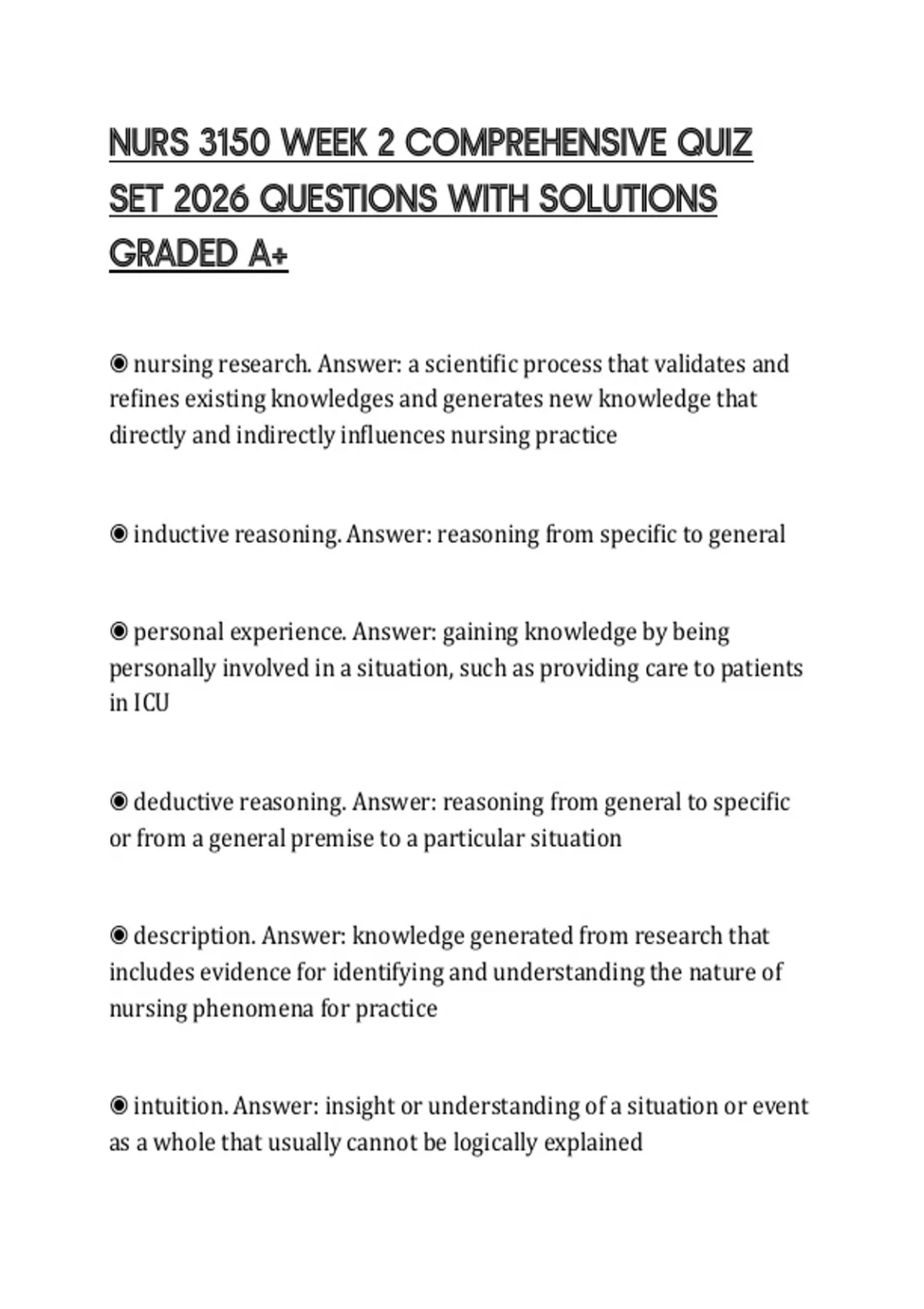 ◉ deductive reasoning. Answer: reasoning from general to specific