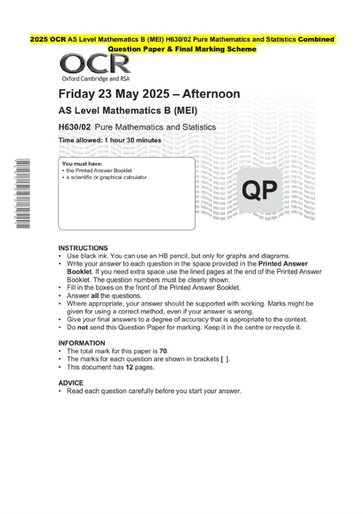 This document contains a comprehensive, combined, and integrated question paper with a complete final marking scheme. It is well-structured and suitable for revision, exam preparation, continuous assessment tests, and academic reference. Ideal for students and educators seeking reliable and knowledgeable practice material.