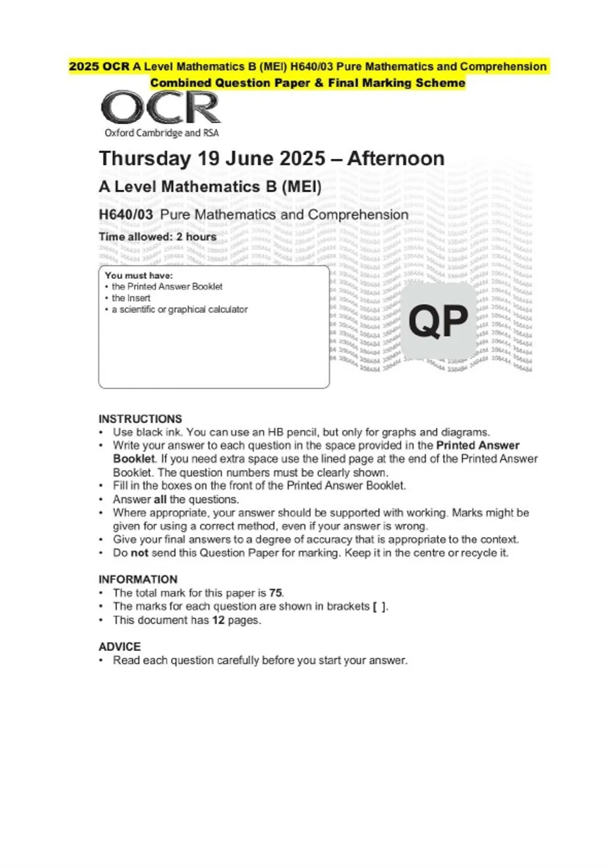 This document contains a comprehensive, combined, and integrated question paper with a complete final marking scheme. It is well-structured and suitable for revision, exam preparation, continuous assessment tests, and academic reference. Ideal for students and educators seeking reliable and knowledgeable practice material.