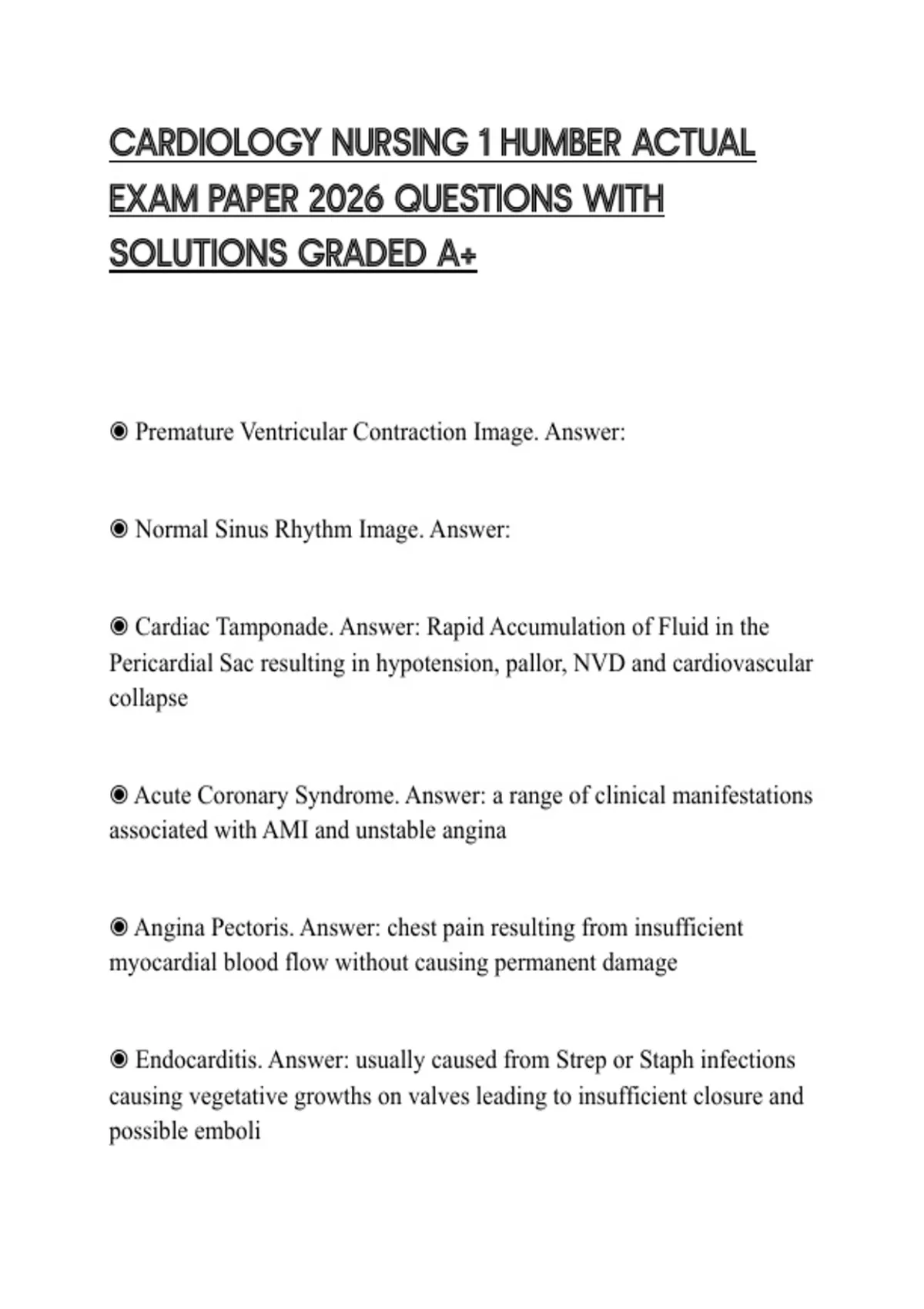 CARDIOLOGY NURSING 1 HUMBER ACTUAL EXAM PAPER 2026 QUESTIONS WITH SOLUTIONS GRADED A+