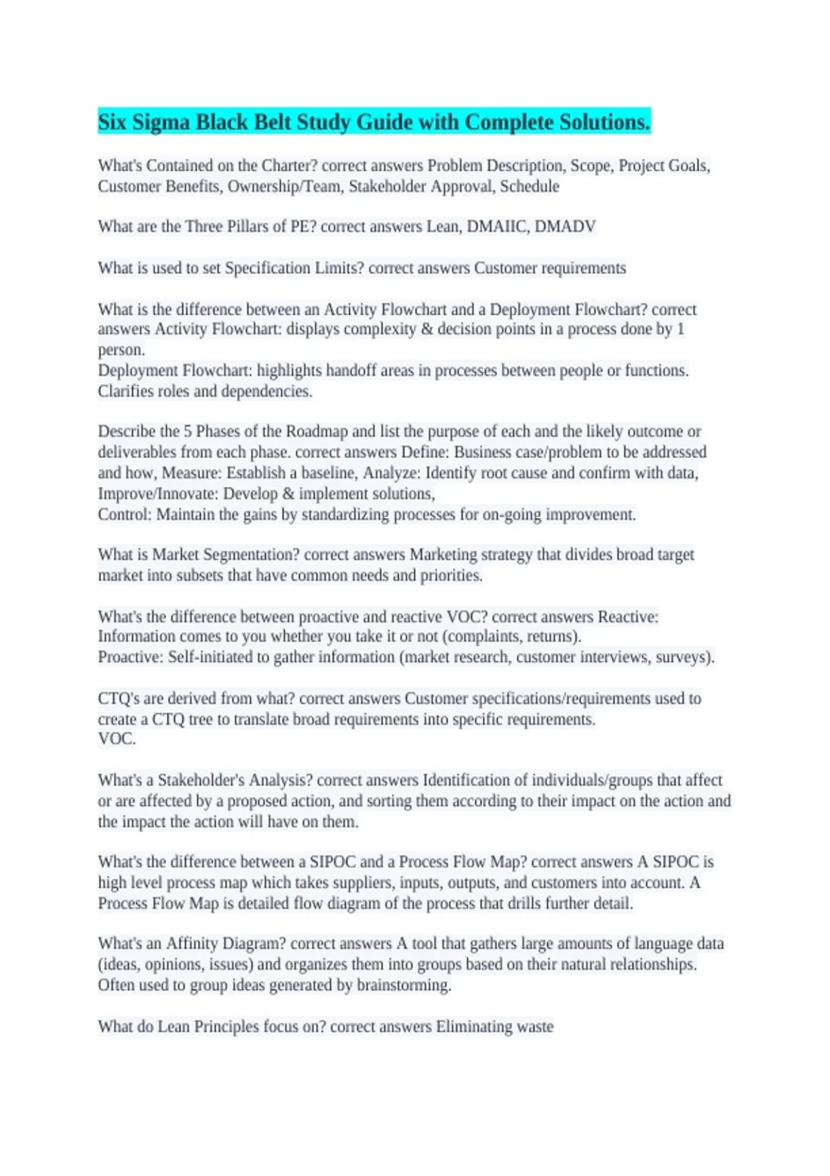 Six Sigma Black Belt Study Guide with Complete Solutions.