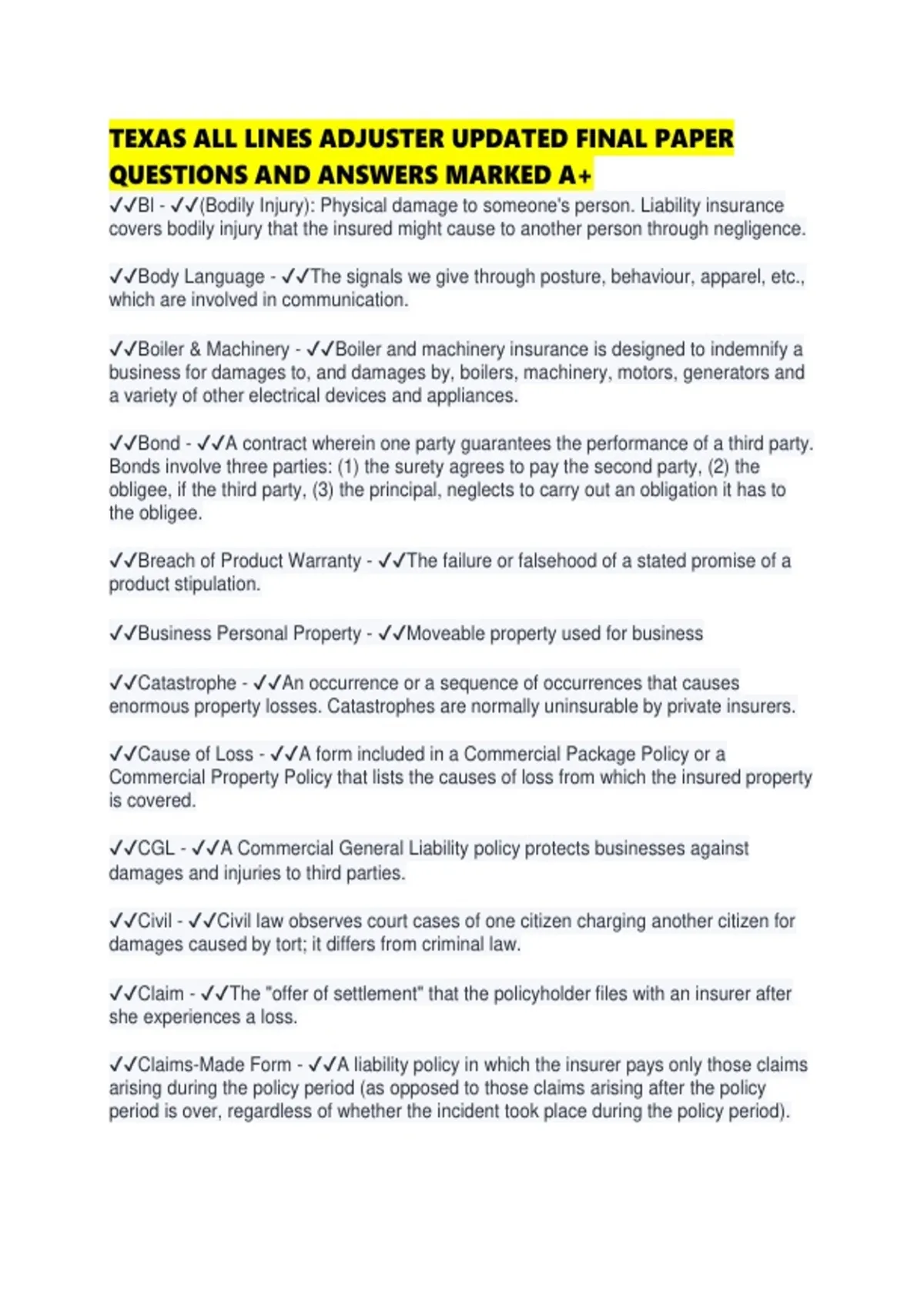 ✔✔Bl - ✔✔(Bodily Injury): Physical damage to someone's person. Liability insurance