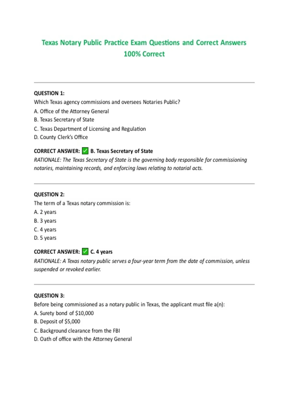RATIONALE: Texas requires a $10,000 surety bond to protect the public from notarial misconduct