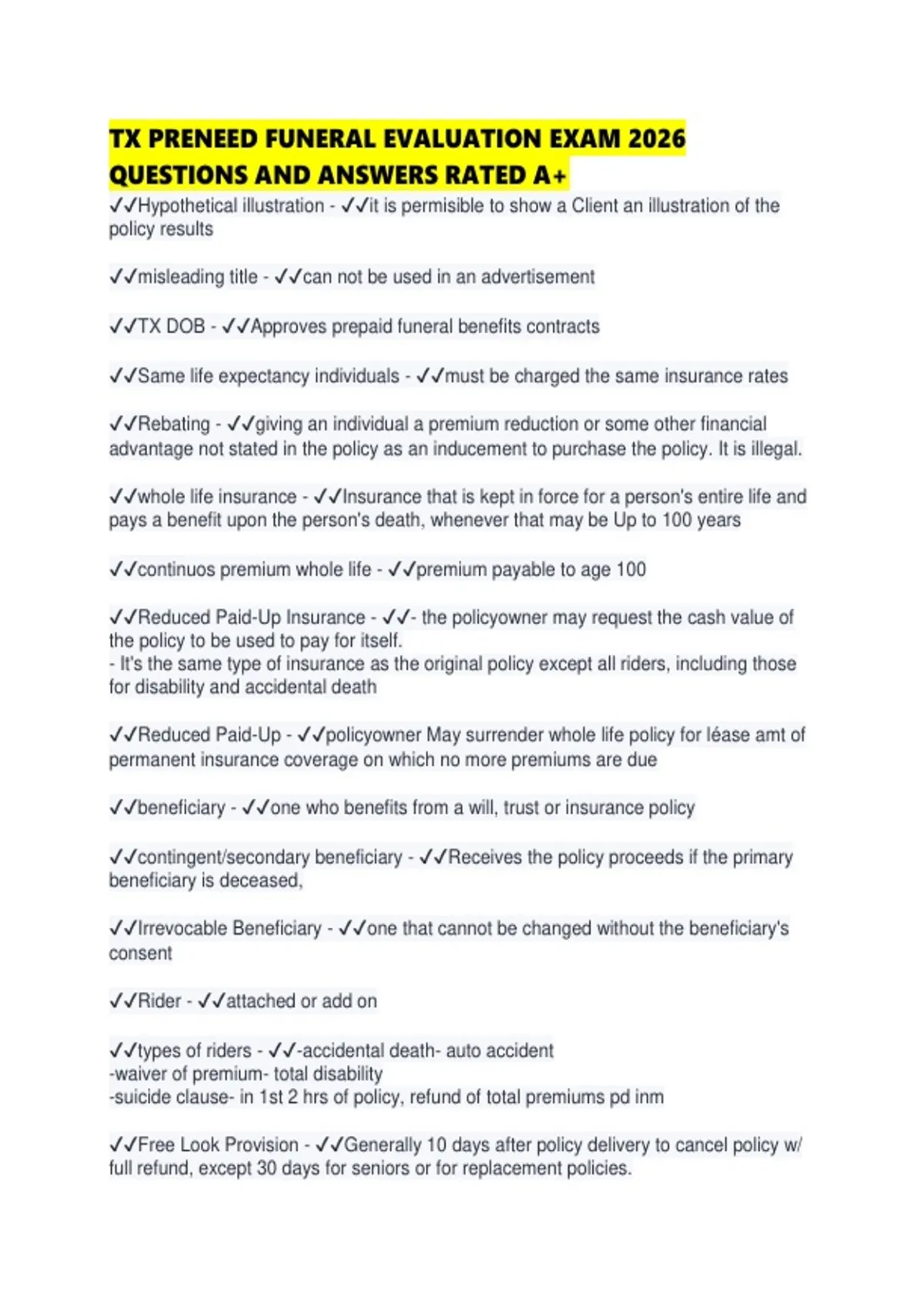 TX PRENEED FUNERAL EVALUATION EXAM 2026 QUESTIONS AND ANSWERS RATED