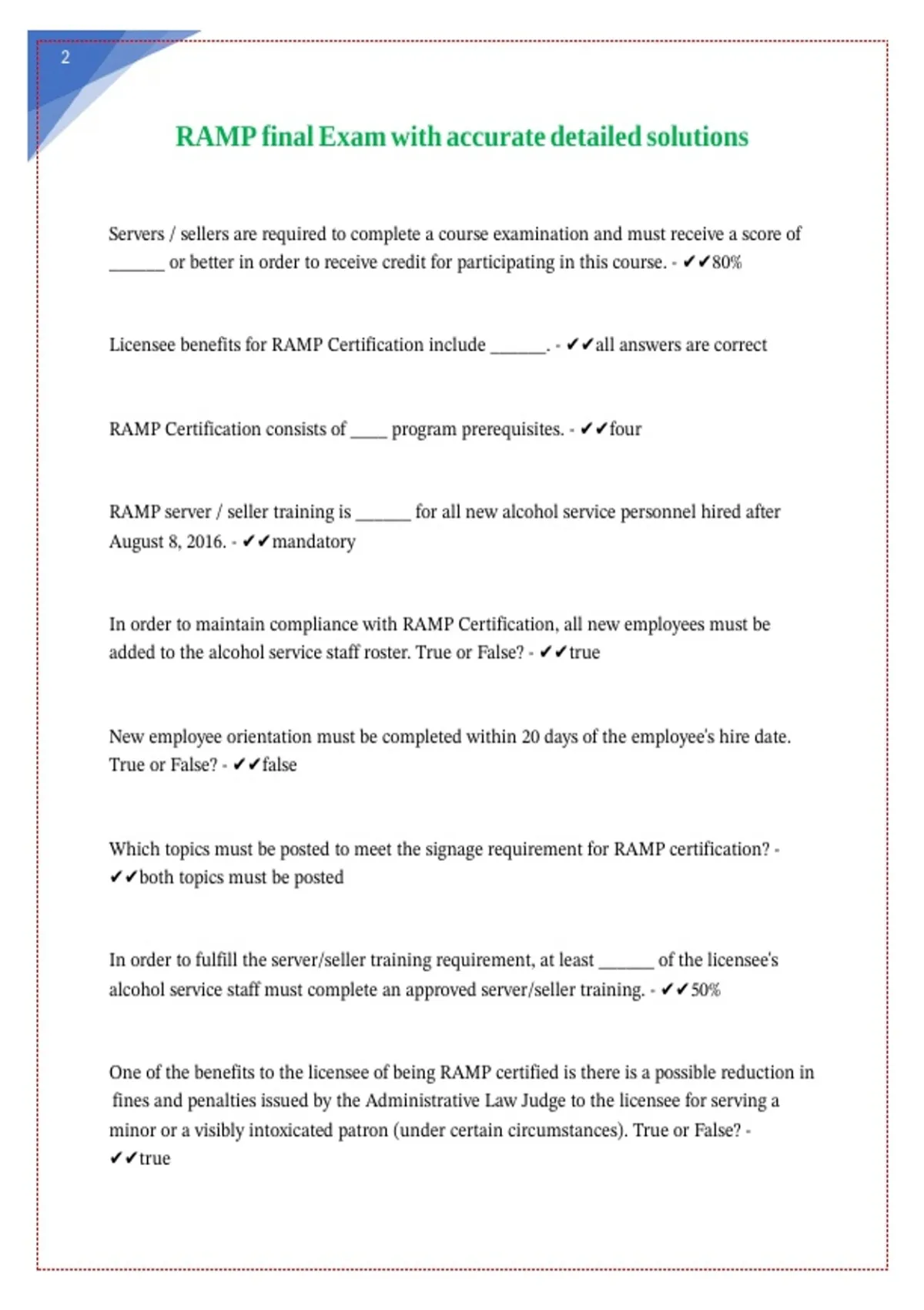 RAMP final Exam with accurate detailed solutions