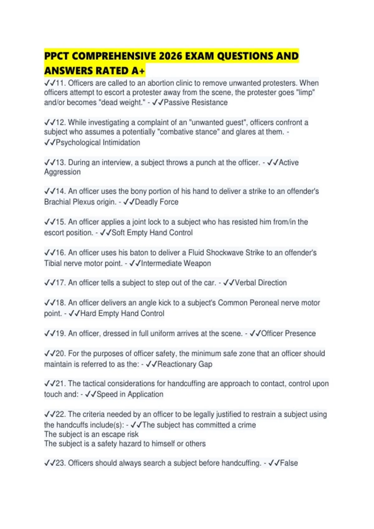 ✔✔23. Officers should always search a subject before handcuffing. - ✔✔False