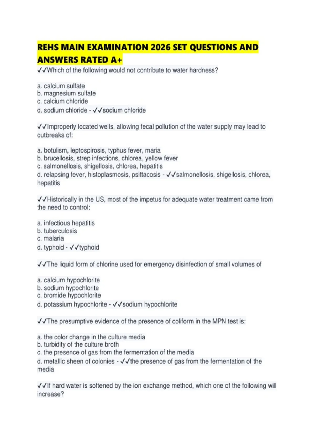REHS MAIN EXAMINATION 2026 SET QUESTIONS AND ANSWERS RATED