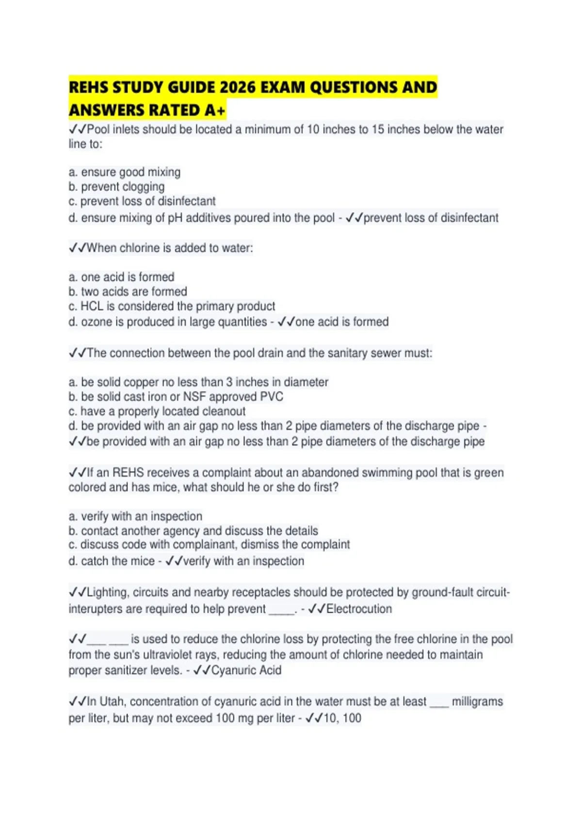proper sanitizer levels. - ✔✔Cyanuric Acid