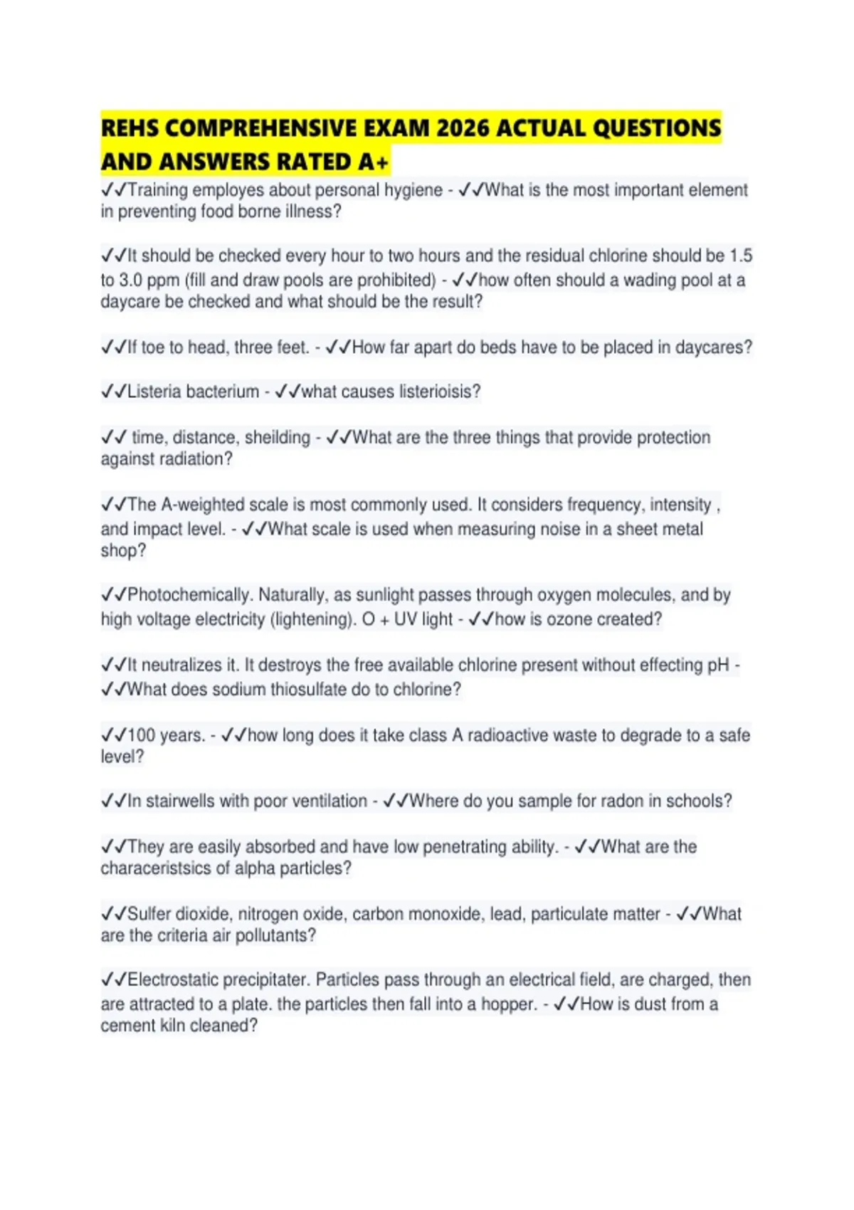 REHS COMPREHENSIVE EXAM 2026 ACTUAL QUESTIONS AND ANSWERS RATED