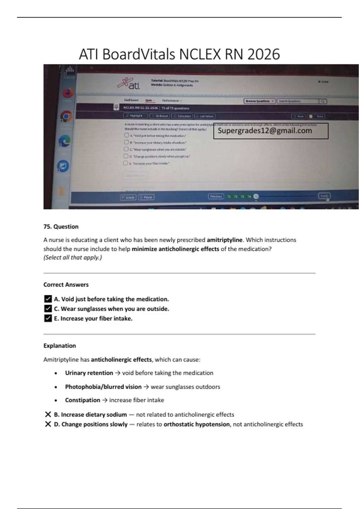 ❌ D. Change positions slowly — relates to orthostatic hypotension, not anticholinergic effects