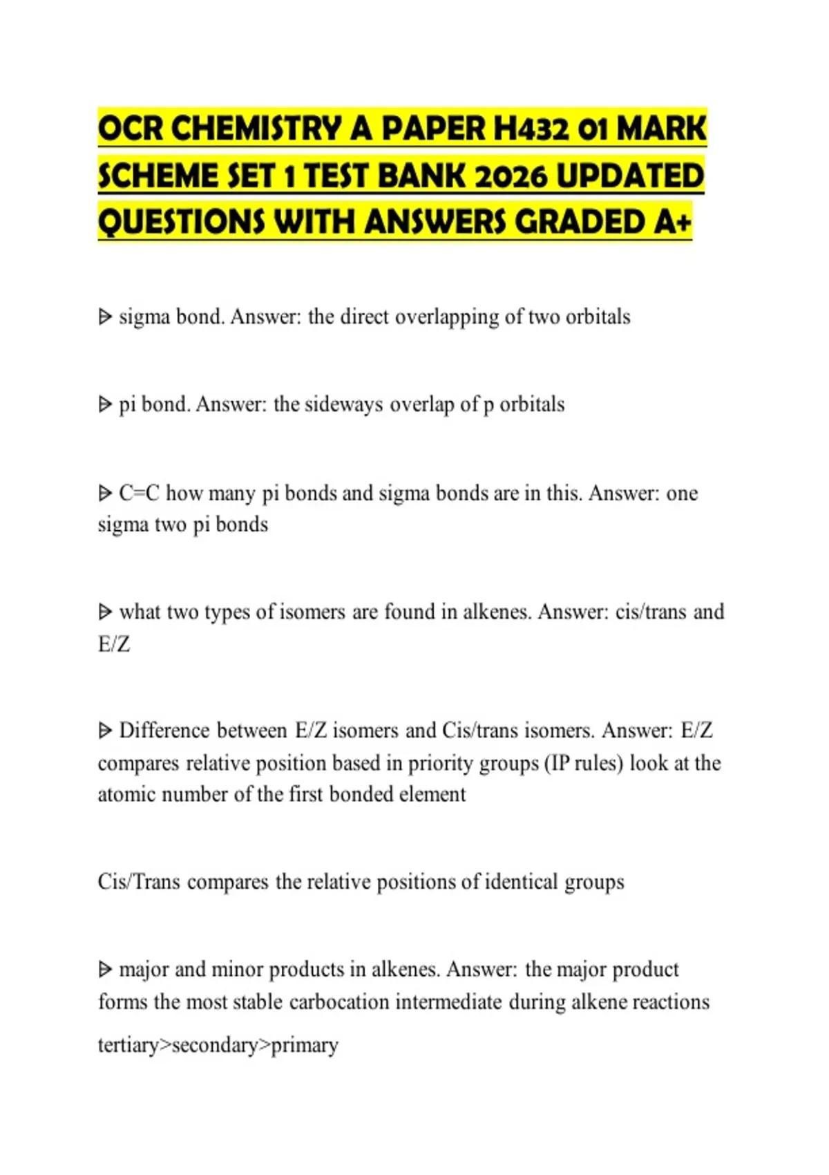 OCR CHEMISTRY A PAPER H432 01 MARK SCHEME SET 1 TEST BANK 2026 UPDATED QUESTIONS WITH ANSWERS GRADED A+