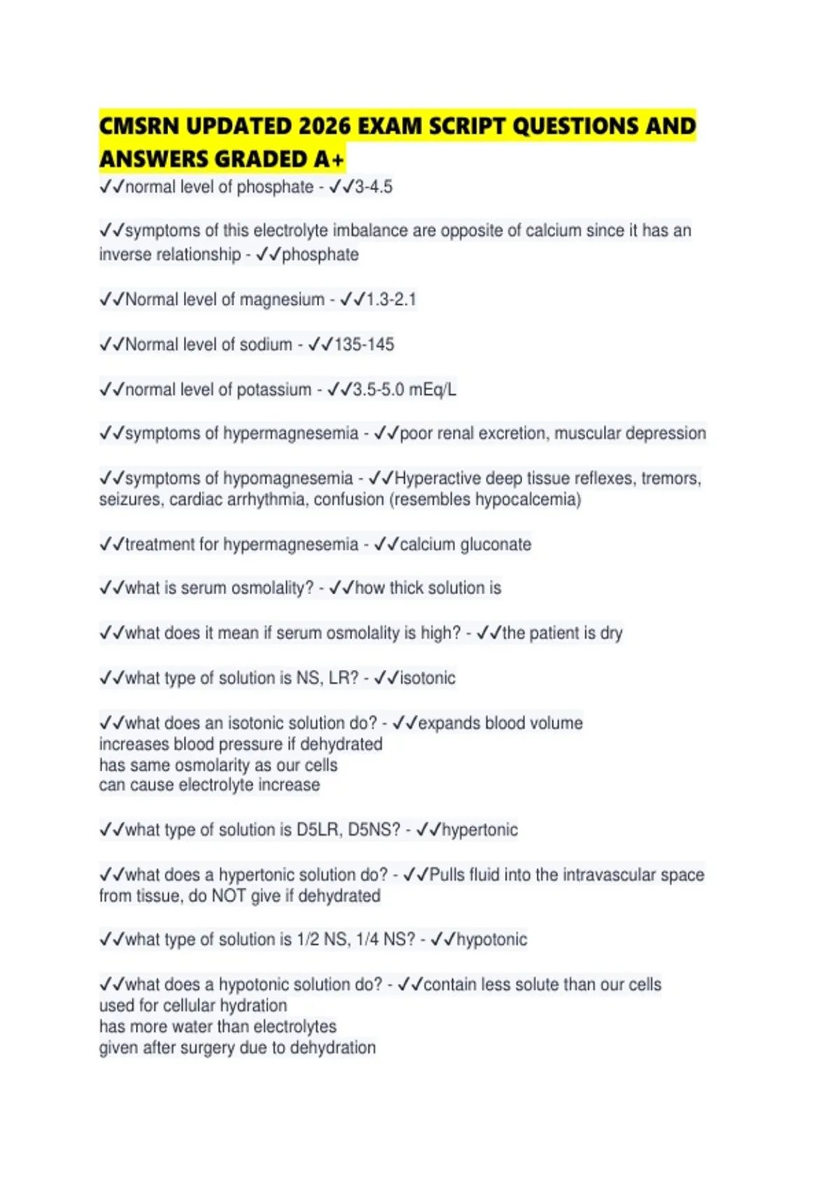 CMSRN UPDATED 2026 EXAM SCRIPT QUESTIONS AND ANSWERS GRADED