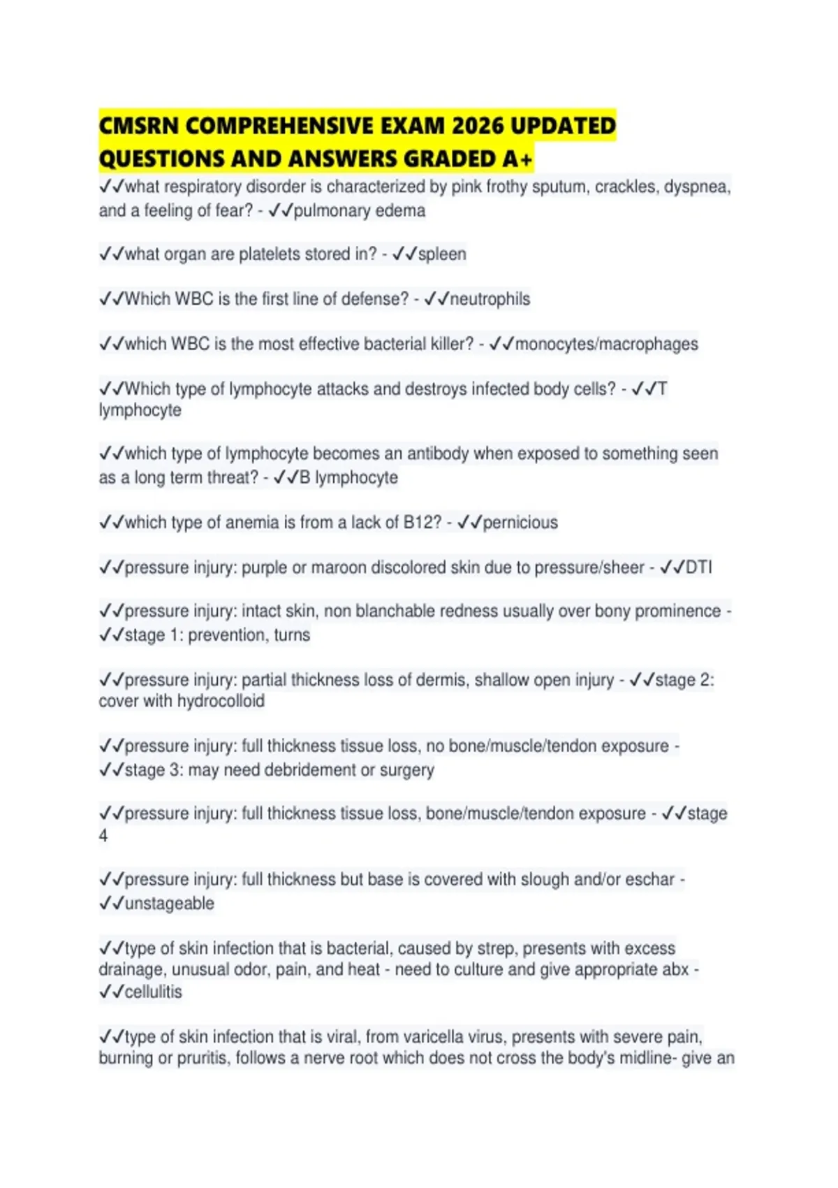 CMSRN COMPREHENSIVE EXAM 2026 UPDATED QUESTIONS AND ANSWERS GRADED