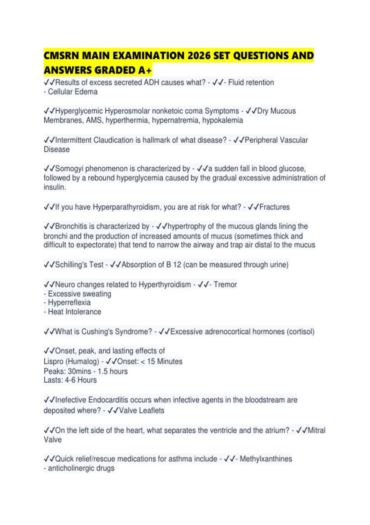 ✔✔If you have Hyperparathyroidism, you are at risk for what? - ✔✔Fractures