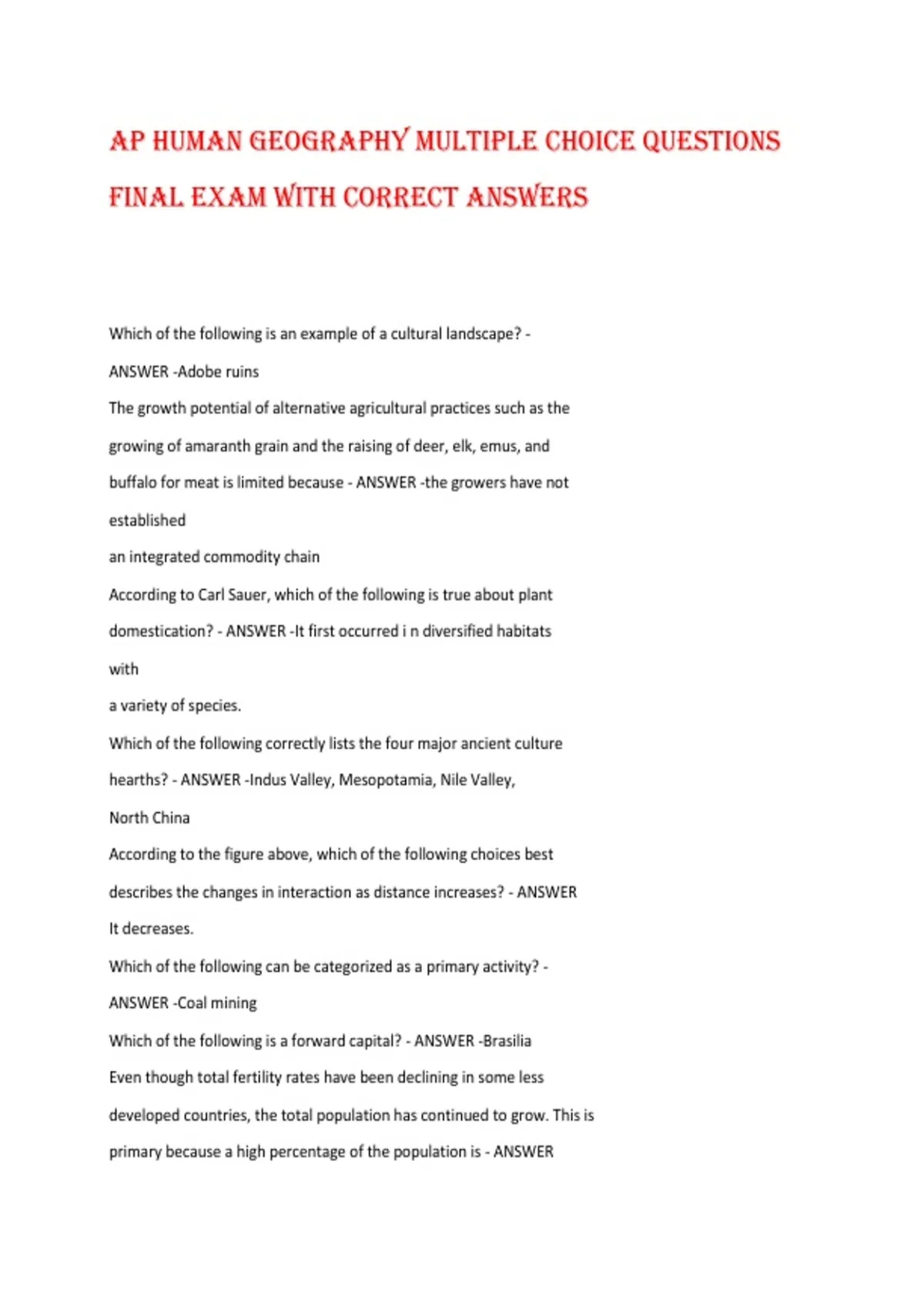 Final Exam With Correct Answers