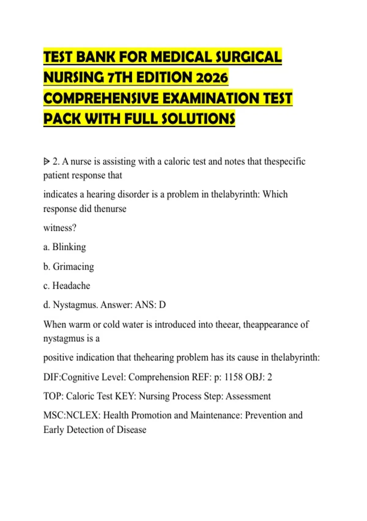 d. Nystagmus. Answer: ANS: D