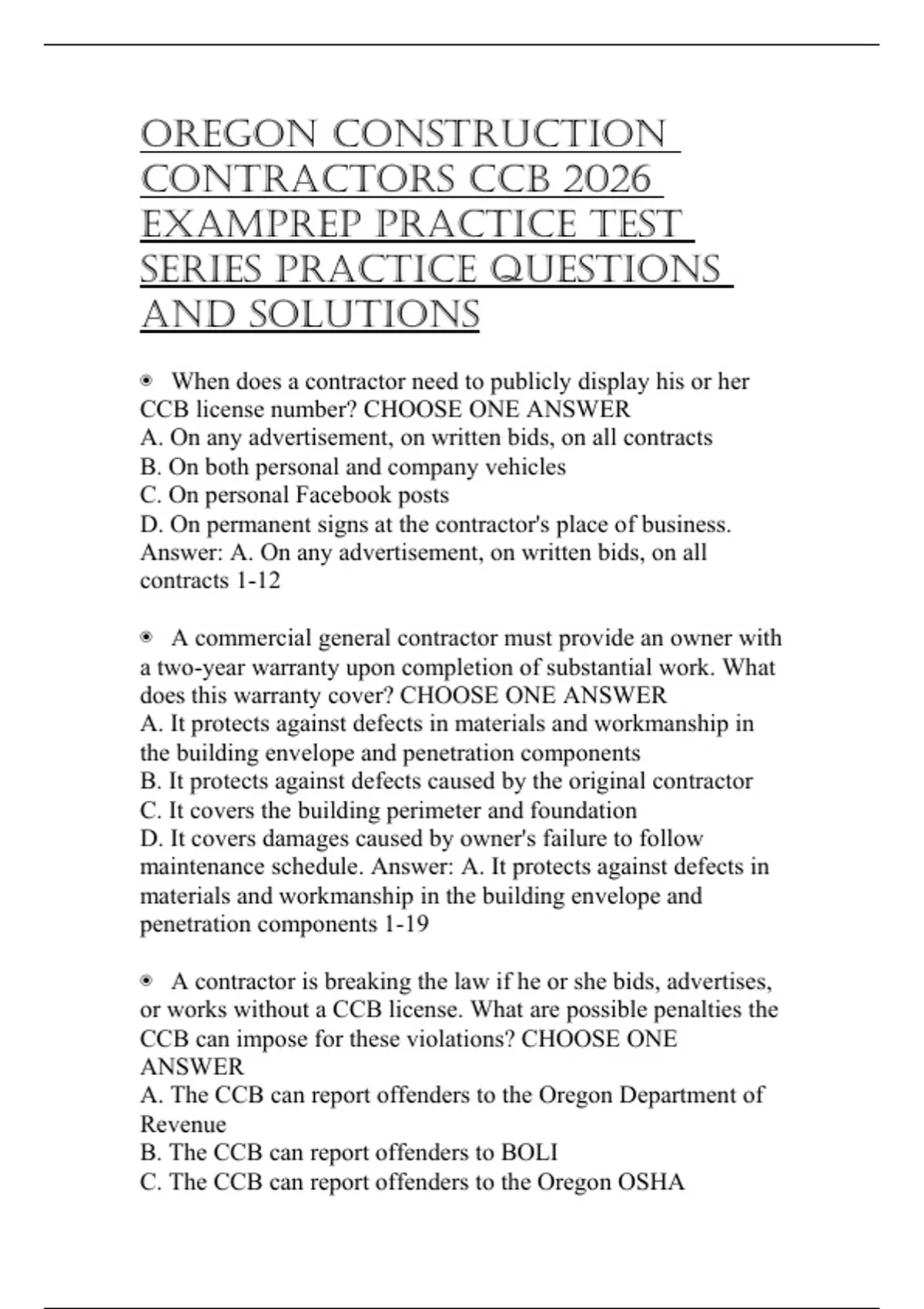 of up to $5000. Answer: A. The CCB can report offenders to the