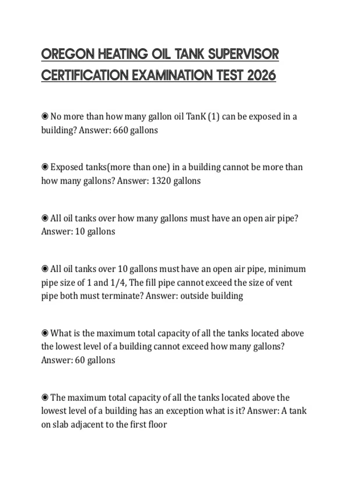 ◉ Outside oil tanks must be mounted on what? Answer: A slab 4