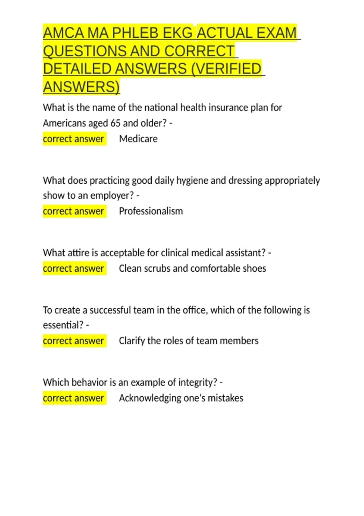 , AMCA MA PHLEB EKG ACTUAL EXAM