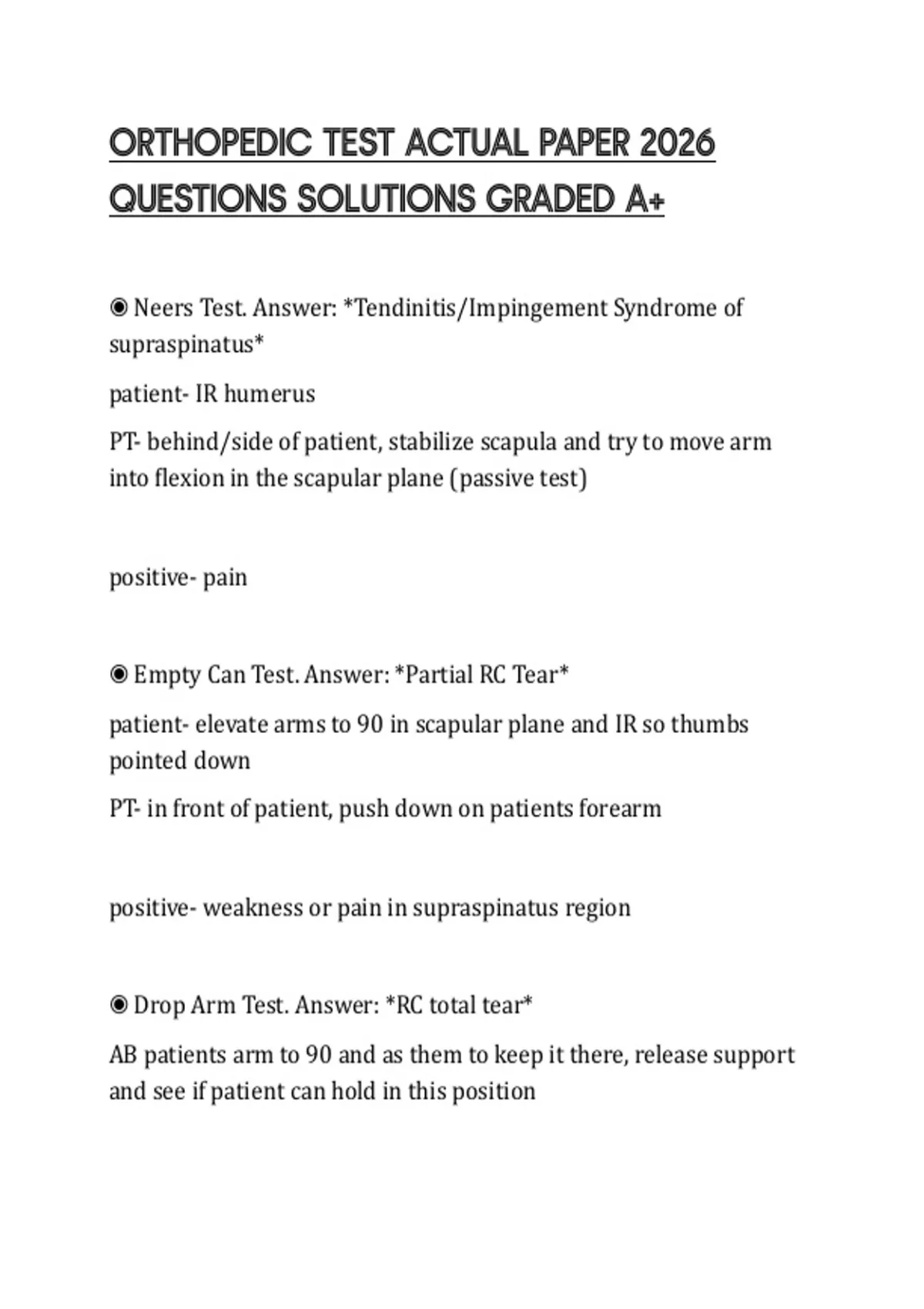 ORTHOPEDIC TEST ACTUAL PAPER 2026 QUESTIONS SOLUTIONS GRADED A+