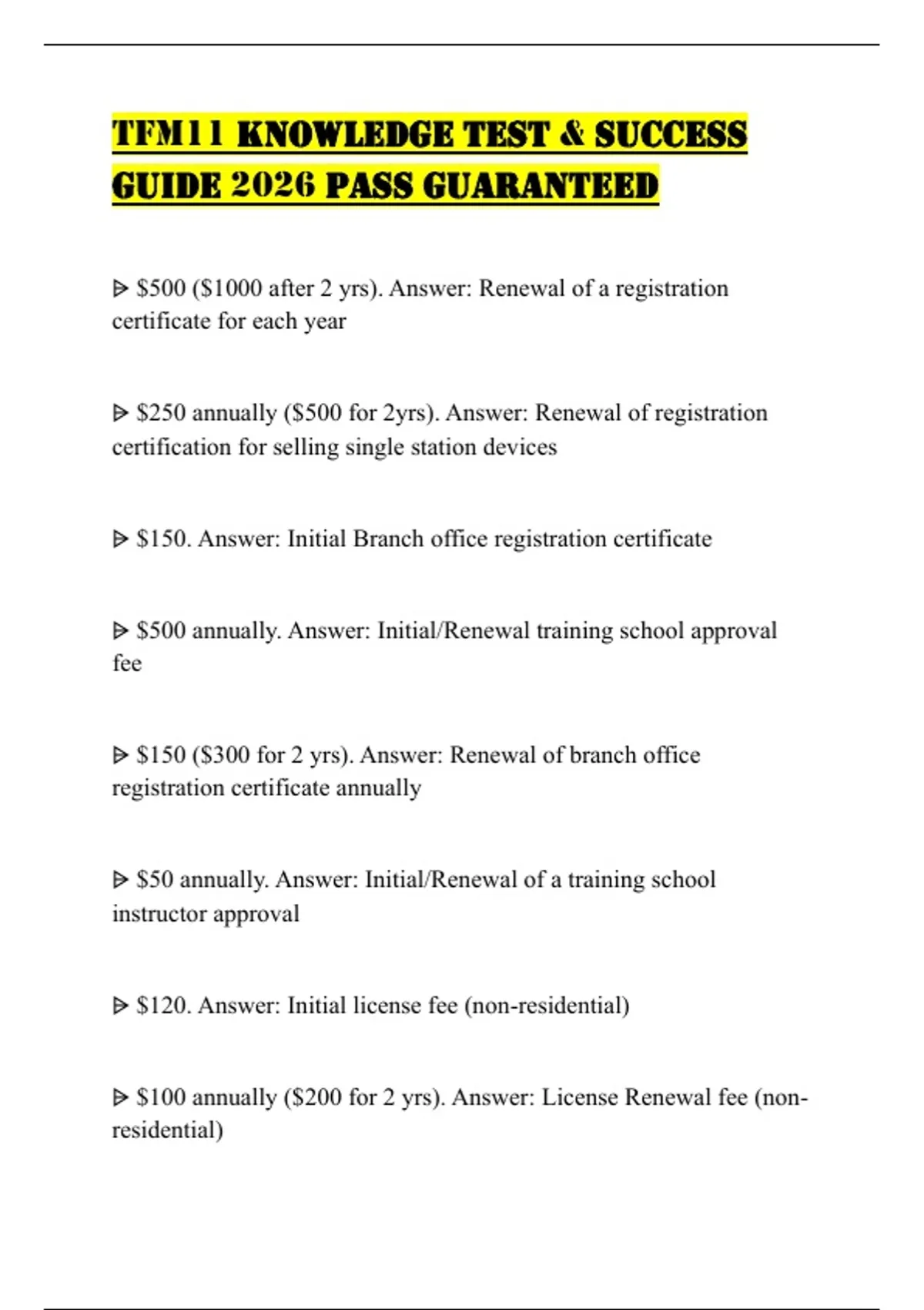 ⩥ $100 annually ($200 for 2 yrs). Answer: License Renewal fee (non-
