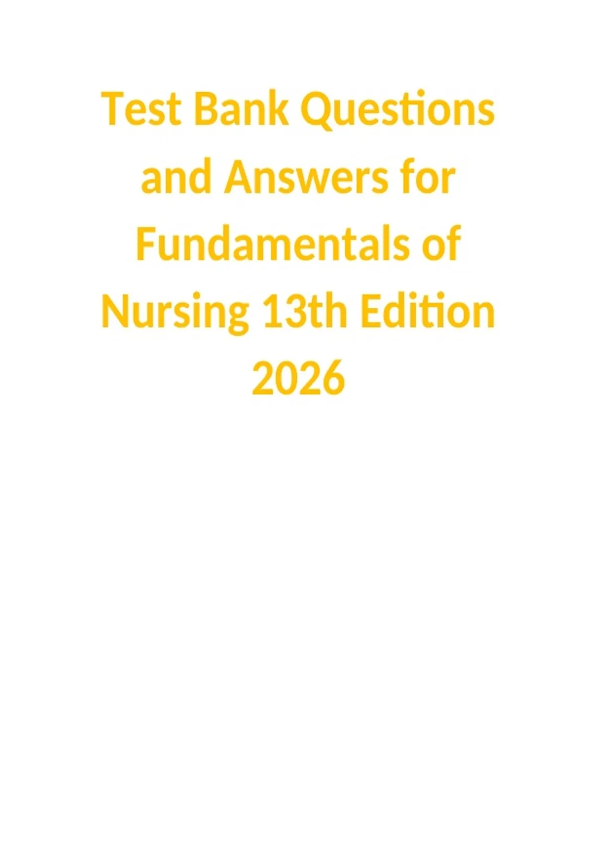 Test Bank Questions and Answers for Fundamentals of Nursing 13th Edition 2026.docx