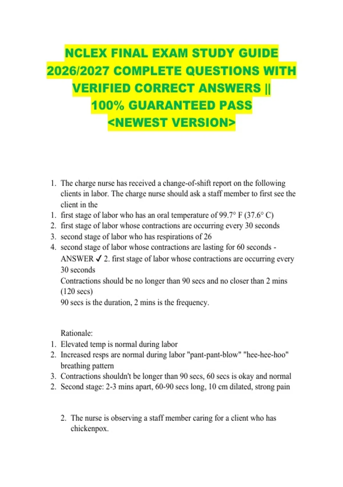 ANSWER ✔ 2. first stage of labor whose contractions are occurring every