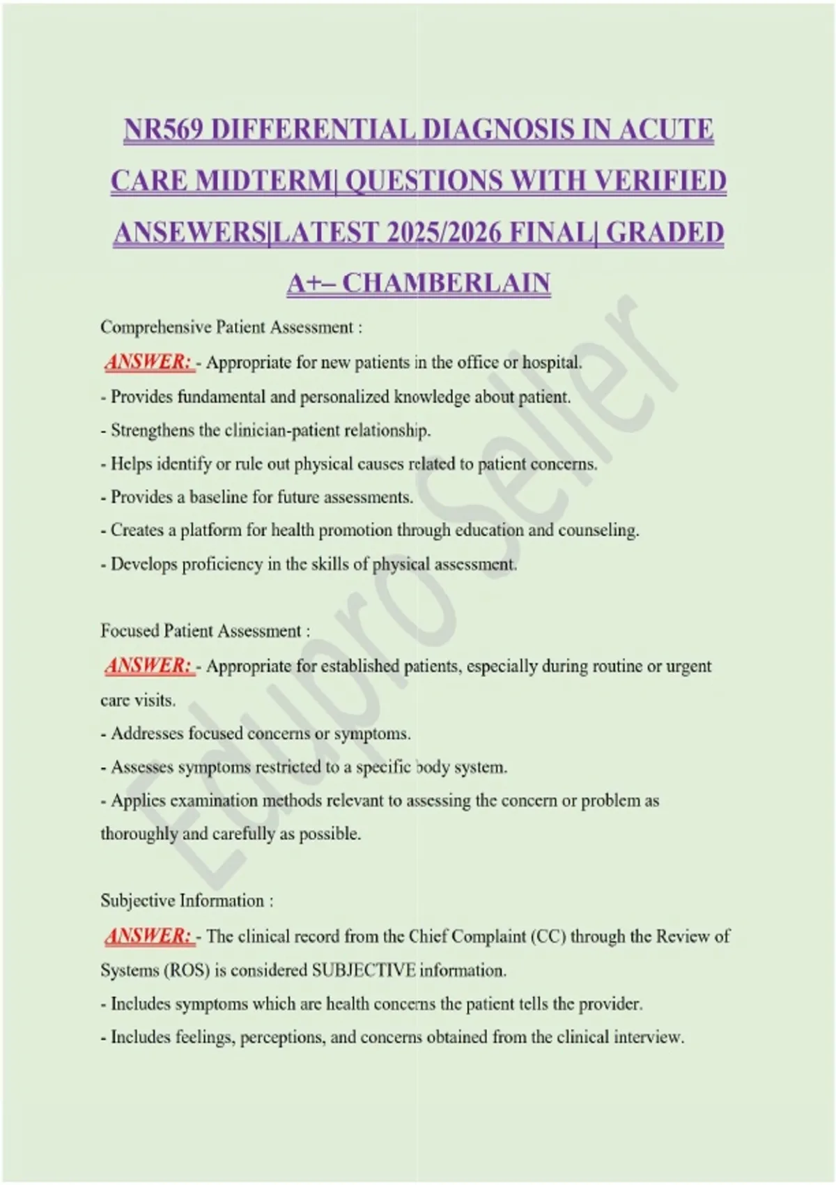 NR569 DIFFERENTIAL DIAGNOSIS IN ACUTE CARE MIDTERM| QUESTIONS WITH VERIFIED ANSEWERS|LATEST 2025/2026 FINAL| GRADED A+– CHAMBERLAIN