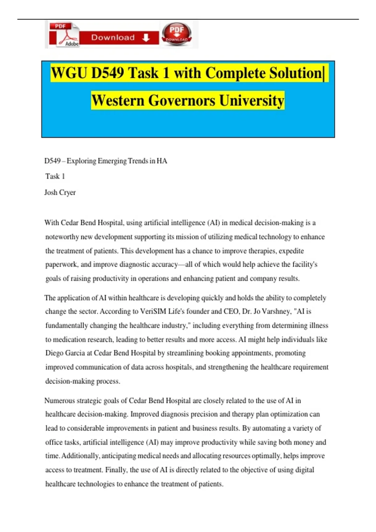 WGU D549 Task 1 with Complete Solution|