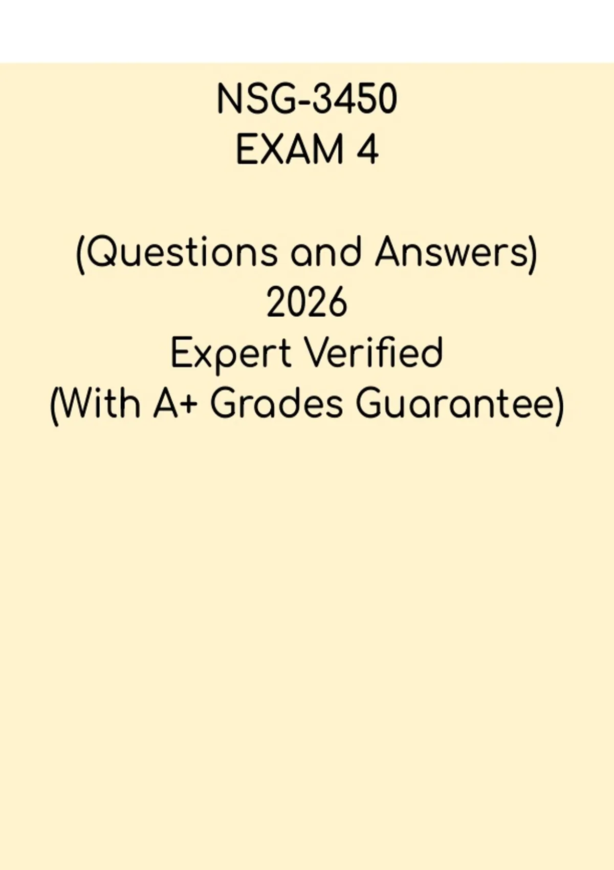 The NSG 3450 Exam 4 PDF is a comprehensive and focused study guide designed to help nursing students prepare for their fourth NSG 3450 exam. This resource includes key advanced nursing concepts, clinical reasoning strategies, and NCLEX-style practice questions to support strong exam performance. Whether you are a BSN student or taking advanced nursing courses, this guide breaks down complex topics