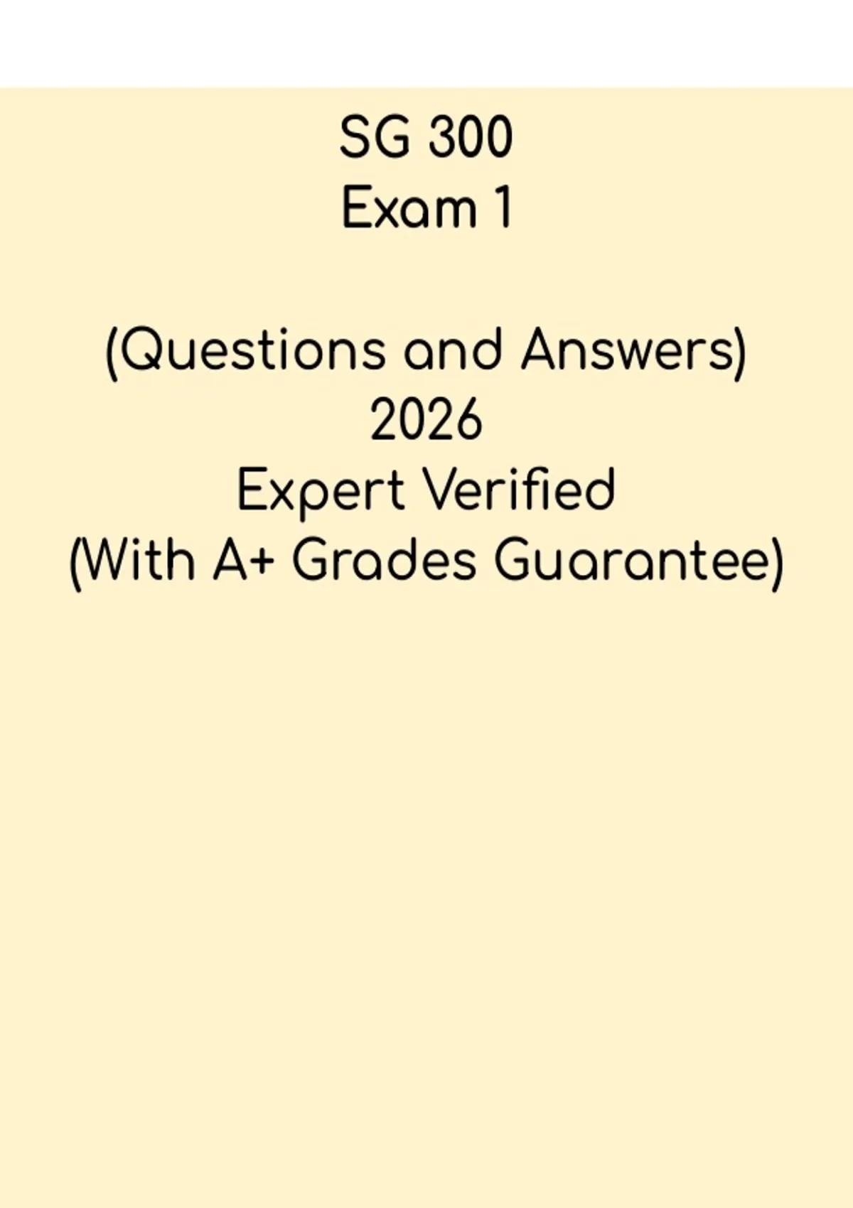 The NSG 300 / SG 300 Exam 1 PDF is a targeted study guide created for nursing students preparing for their first major assessment in the course. It includes key nursing concepts, theory review, and exam-style practice questions designed to improve understanding and exam performance. Perfect for BSN students seeking a structured, easy-to-follow review resource.