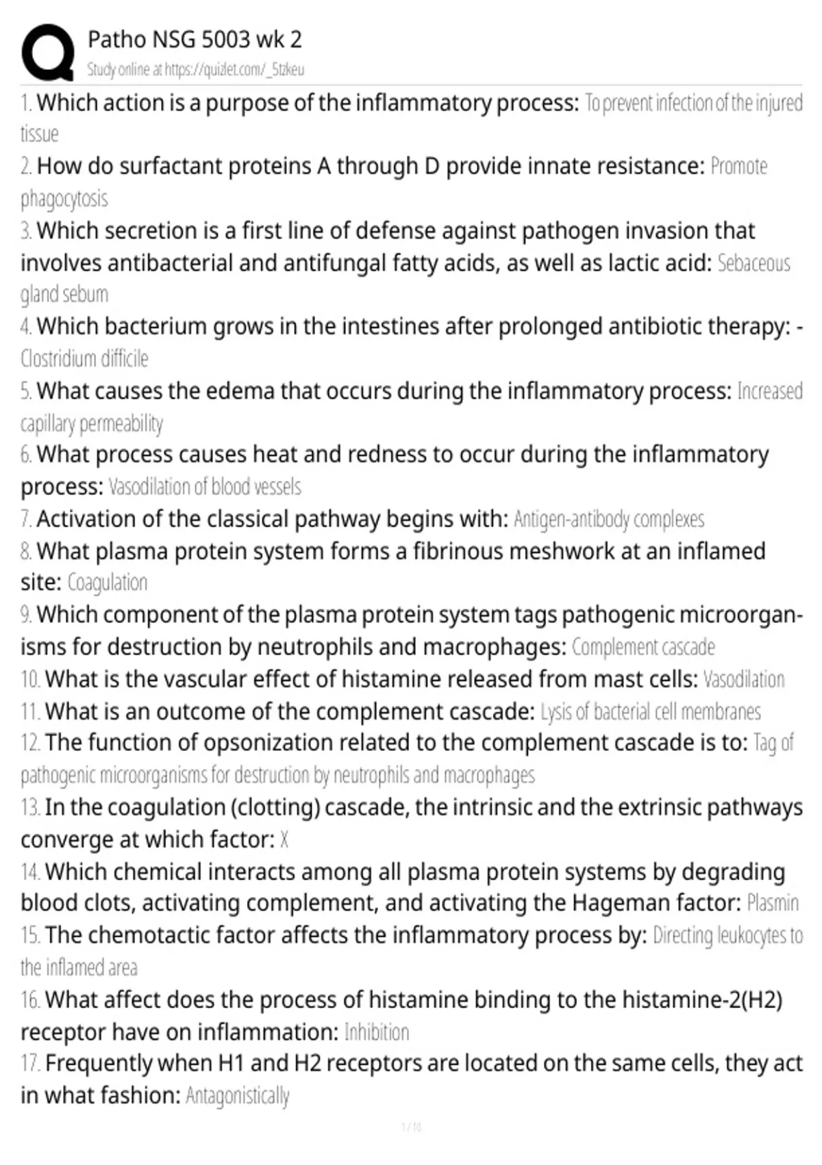 1. Which action is a purpose of the inflammatory process: To prevent infection of the injured