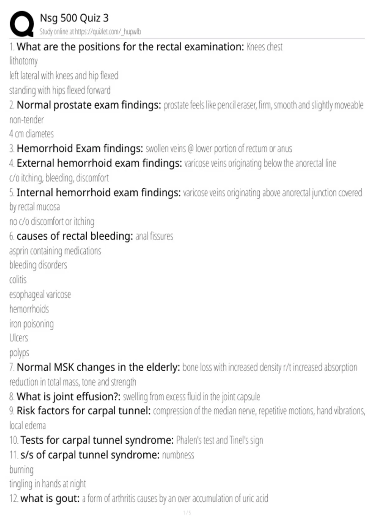 3. Hemorrhoid Exam findings: swollen veins @ lower portion of rectum or anus