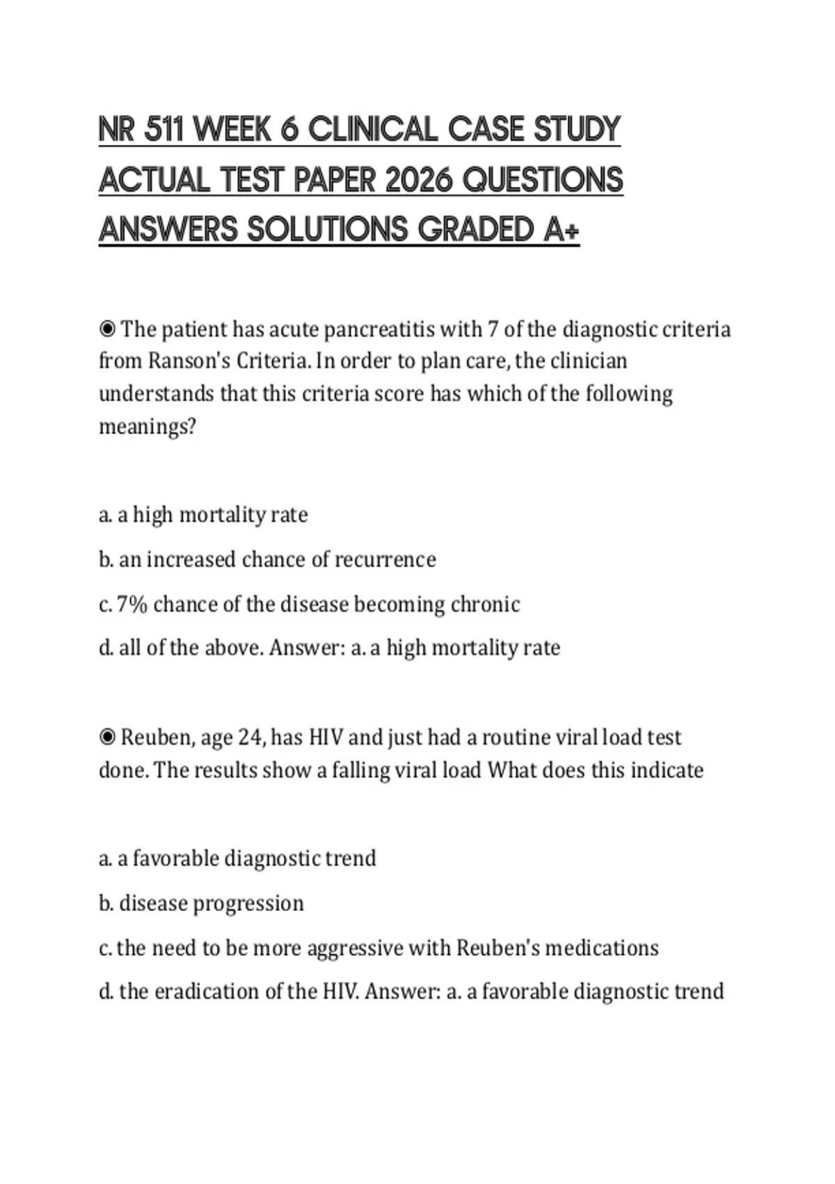 from Ranson's Criteria. In order to plan care, the clinician