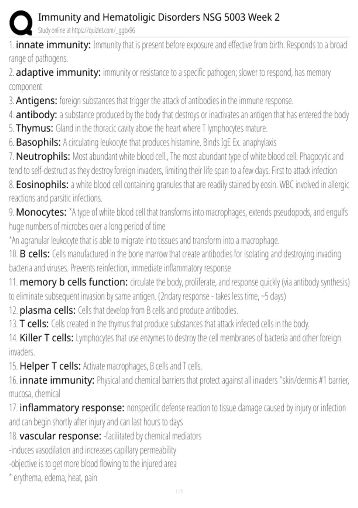 , Immunity and Hematoligic Disorders NSG 5003 Week 2