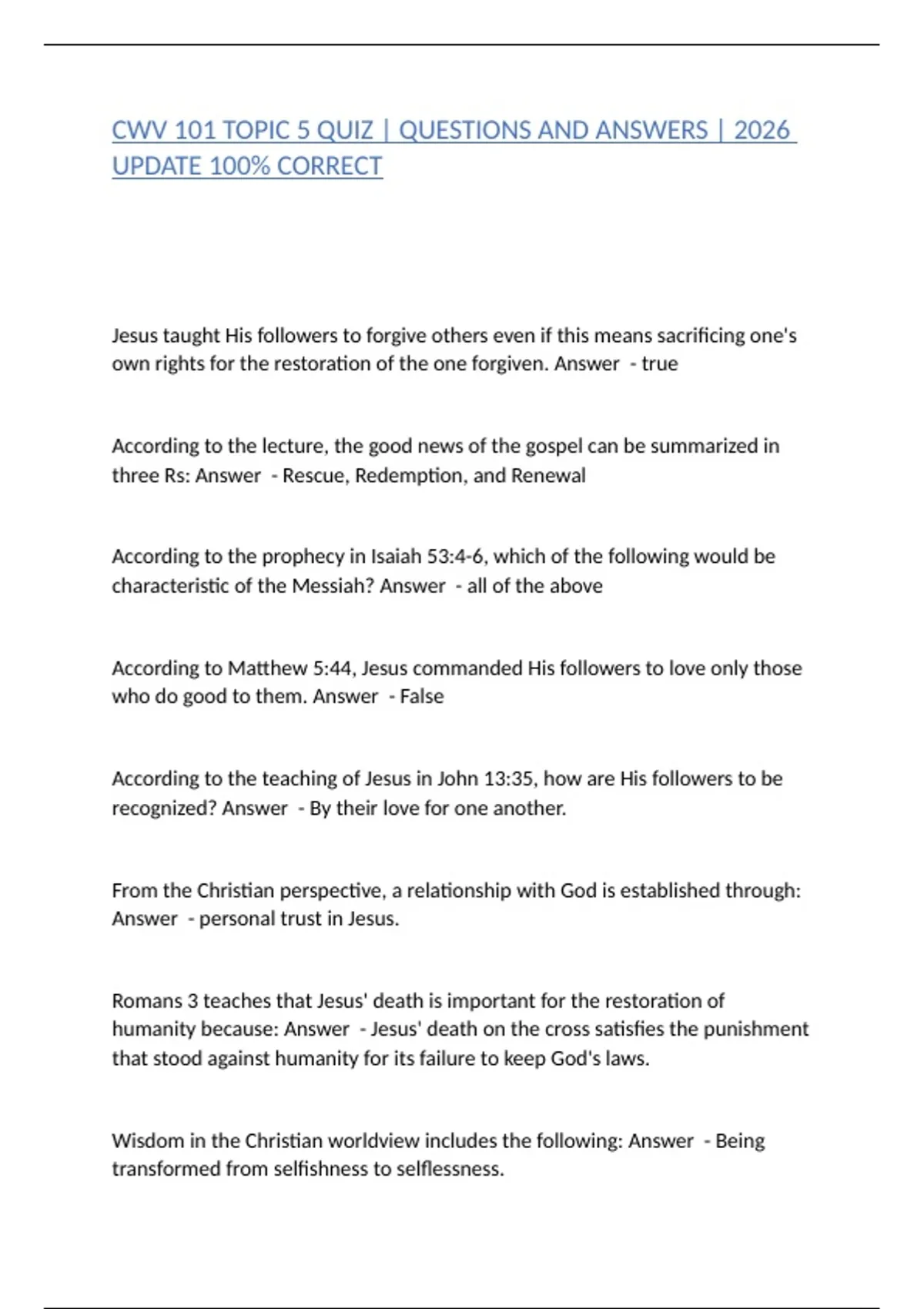 CWV 101 TOPIC 5 QUIZ | QUESTIONS AND ANSWERS | 2026