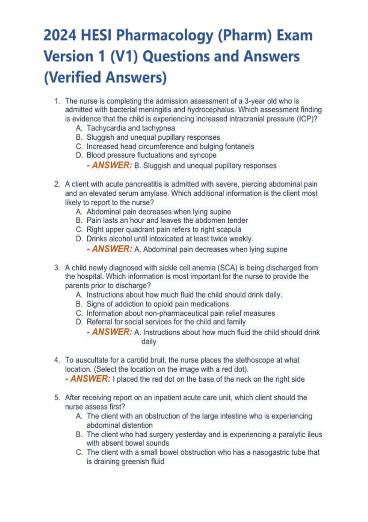 2024 HESI Pharmacology (Pharm) Exam Version 1 (V1) Questions and Answers (Verified Answers)